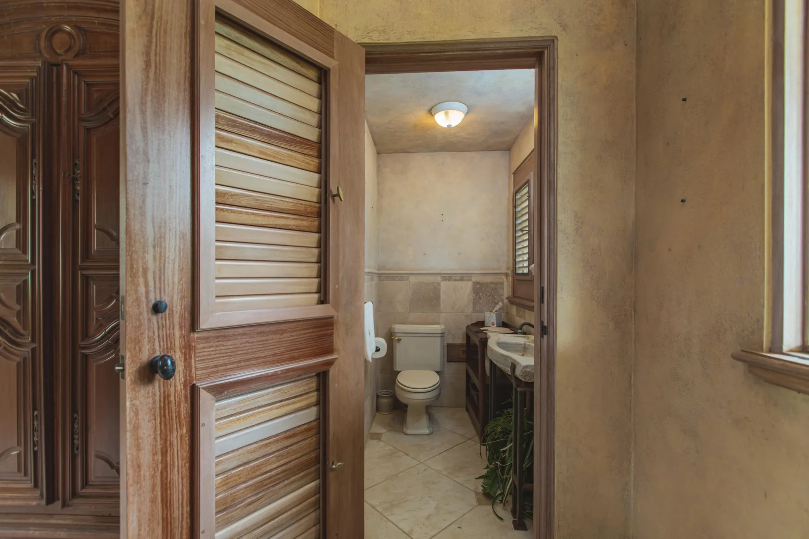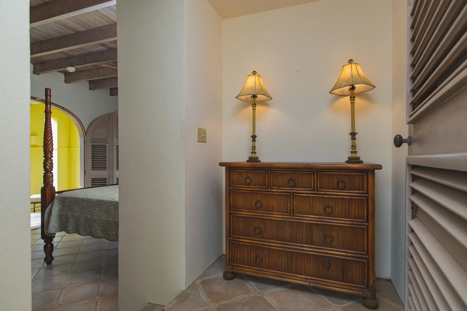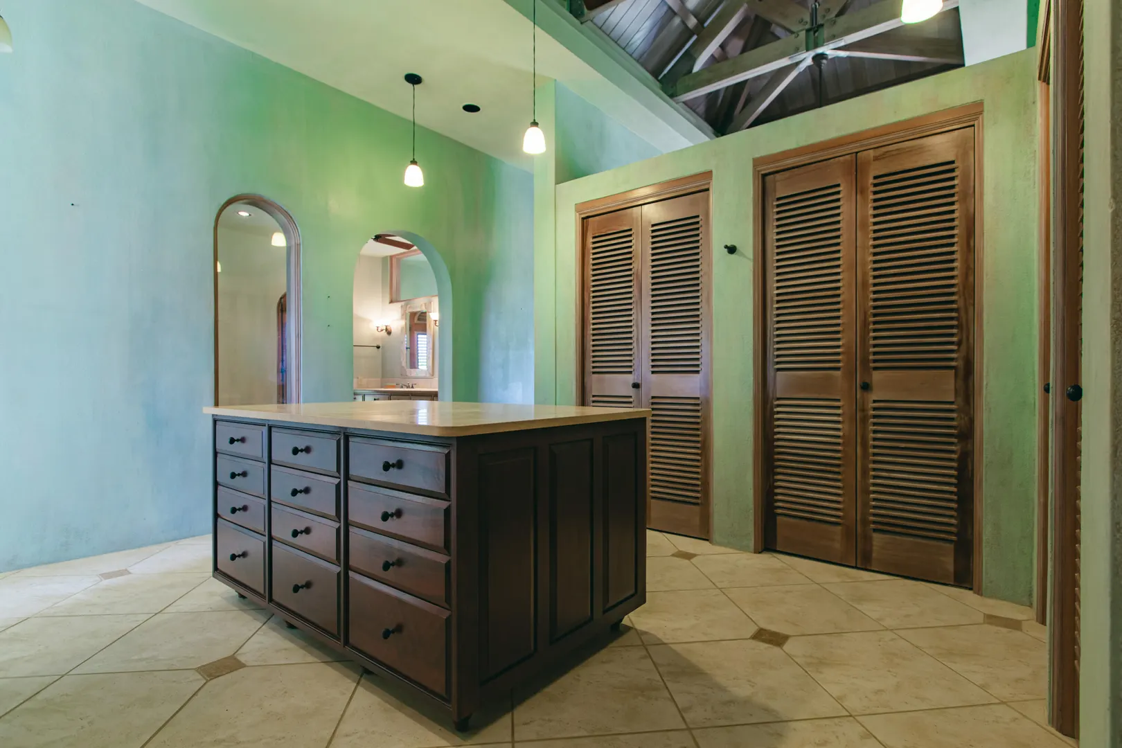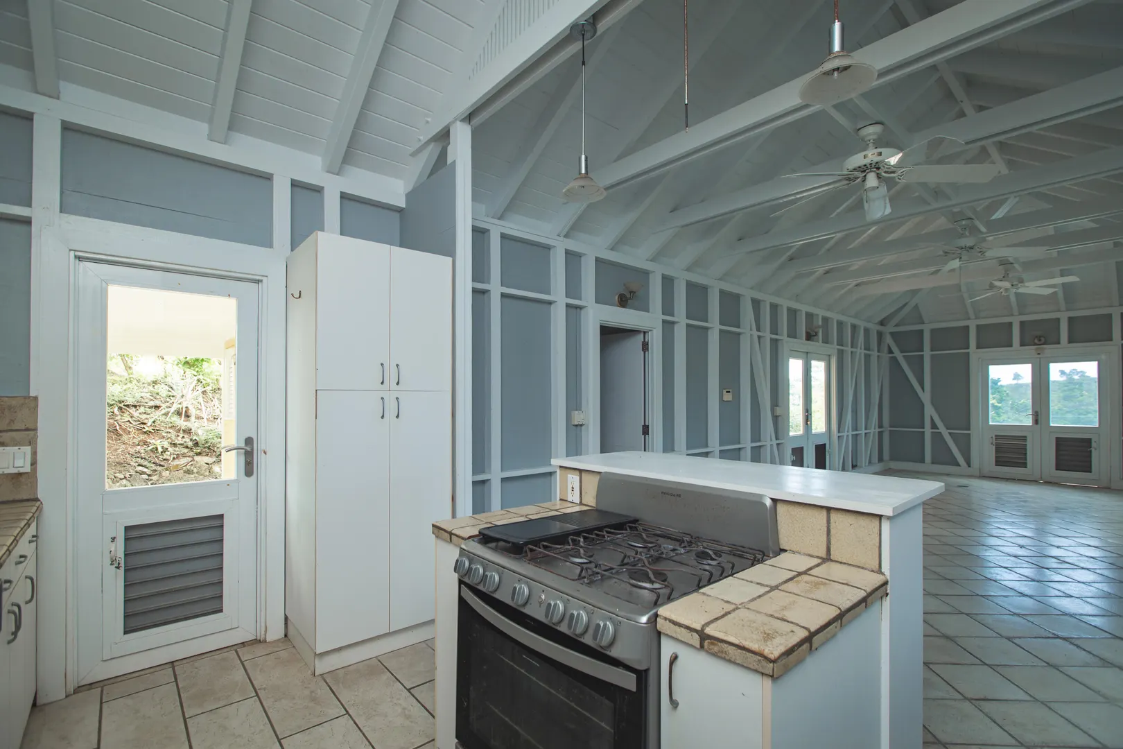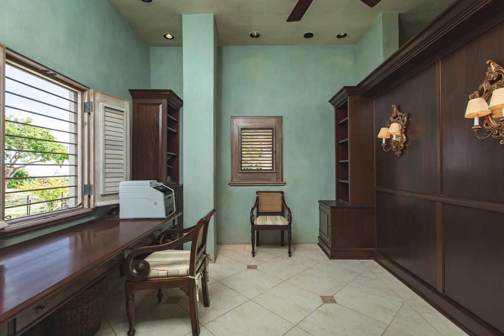 Perched at an elevation of 660 feet on the exclusive, gated roads of Washington Hill, this exquisite estate epitomizes timeless craftsmanship and offers unparalleled ocean views, encompassing Frederiksted pier, Puerto Rico, Vieques, and Culebra.Designed by the esteemed George Hascup, former Director of Design at Cornell University's School of Architecture, this remarkable residence was constructed between 1997 and 2000. It features a robust exterior of poured, steel-reinforced concrete and elegant cement block interiors, all set upon over 8 expansive hilltop acres. Every element of woodwork, from the grand four-poster beds to the gracefully arched windows and doors, is crafted from luxurious mahogany, culminating in a breathtaking mahogany cathedral ceiling.The exquisite millwork and treated metal finishes were all installed by Walsh Metal Works.