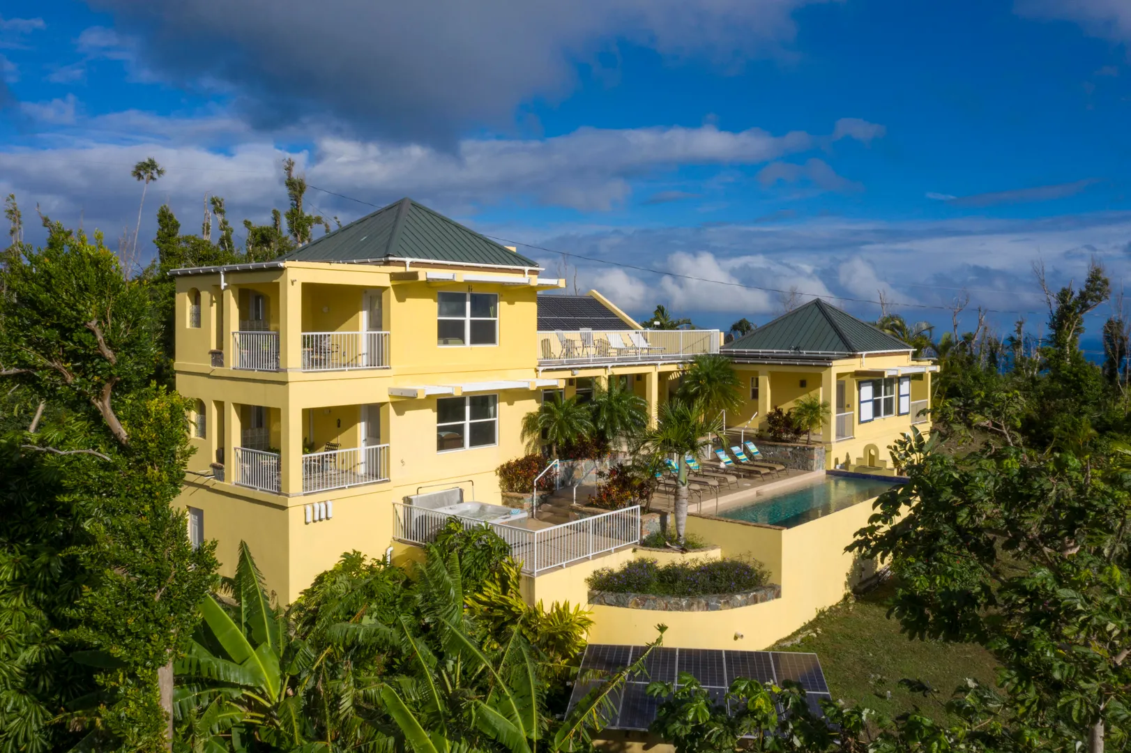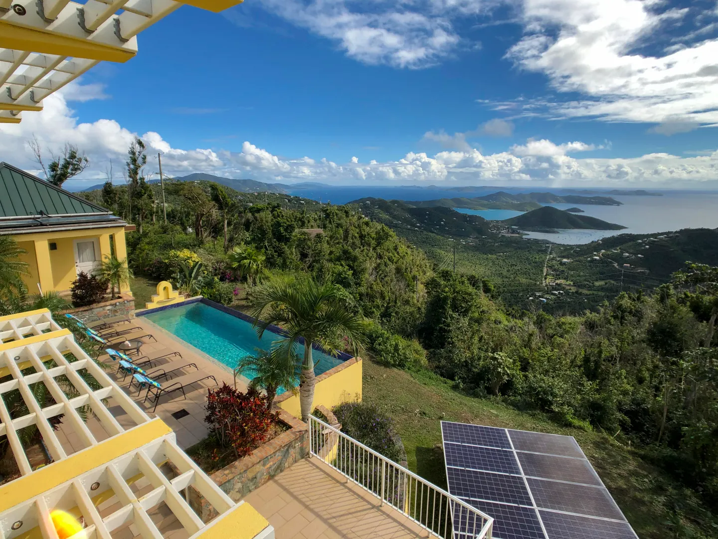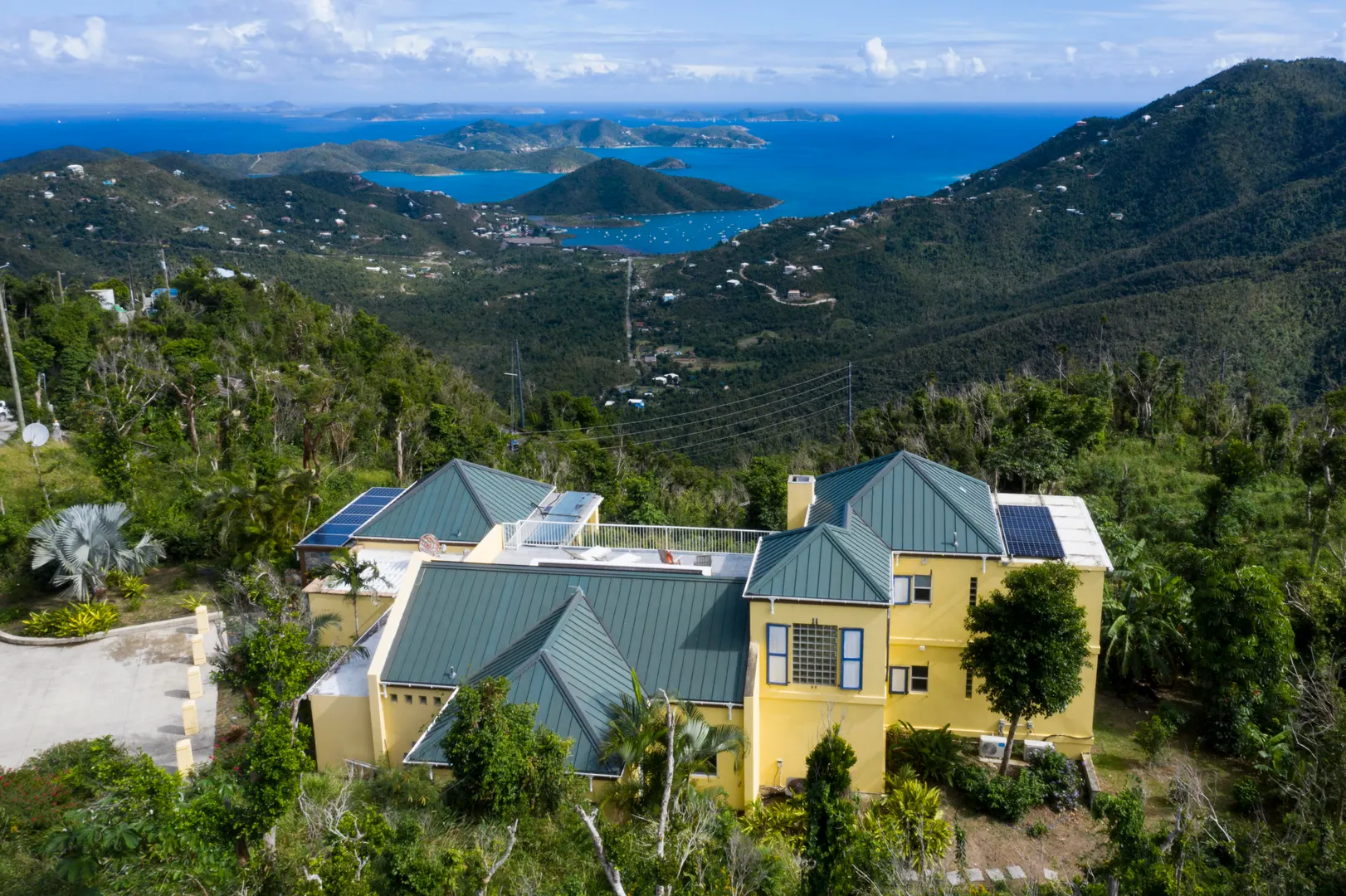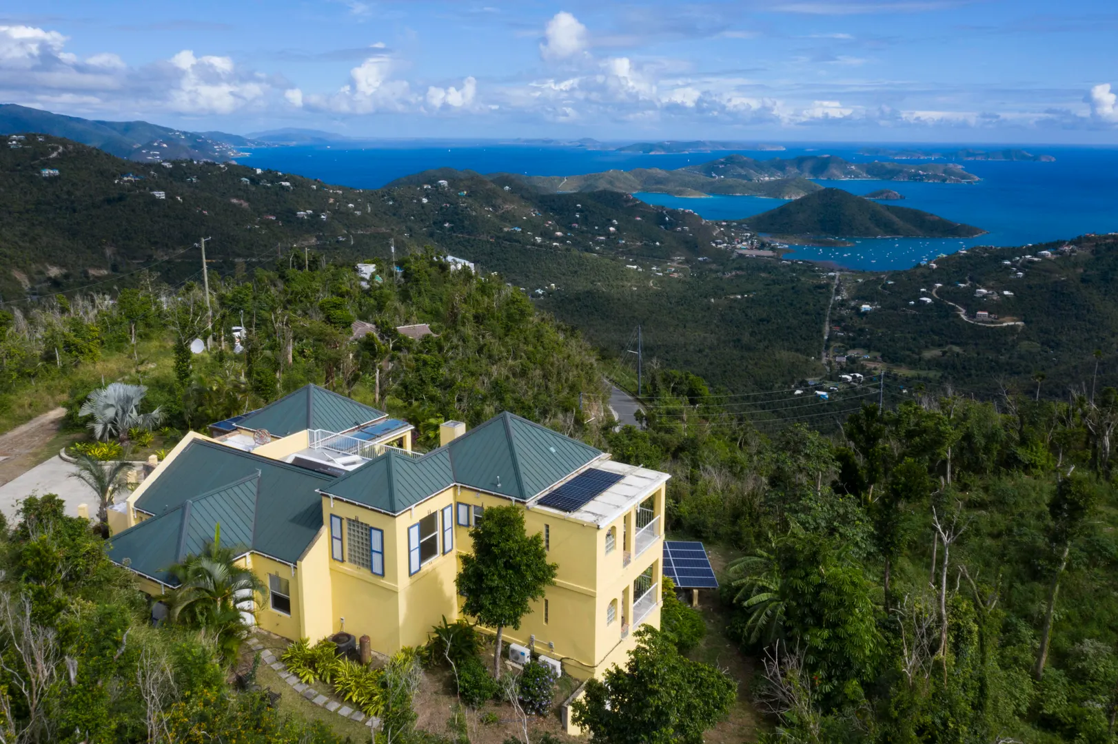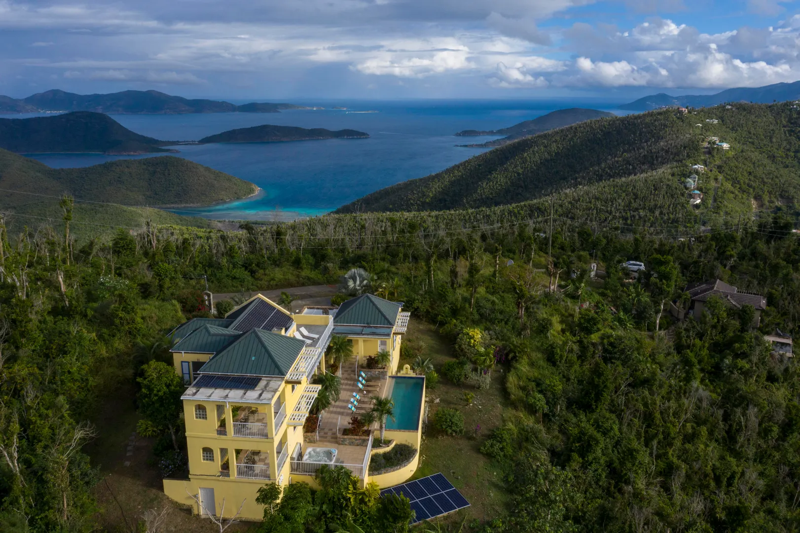 Price Reduced - Sellers Motivated! Set upon the ridge of Mamey Peak, Bay Rum Breeze offers expansive views of the BVI, Coral Harbor and surrounding mountains. The pool and deck areas place you center stage to soak in the majesty of this villa. The main level houses a custom designed kitchen, living and dining area, bedroom/bath, office, laundry and half bath. The master suite and rooftop deck with North Shore views are accessed via the interior staircase. A separate cabana offers a private bedroom suite. All bedrooms feature private outdoor showers and open onto covered porches surrounded by lush landscaping and breath-taking views. This villa with its prominent location, robust construction, strong rental history and solar net-metering make this a truly unique island property.Annual Revenues: Year Revenue 2017 111,787 2018 90,850 2019 102,448 -10.9 kw of solar power w/net metering -All kitchen appliances have been replaced since 2010 (including brand new washing machine) -House was painted in 2019 -2 of the 3 a/c units are newer -Custom hurricane shutters completed in 2019