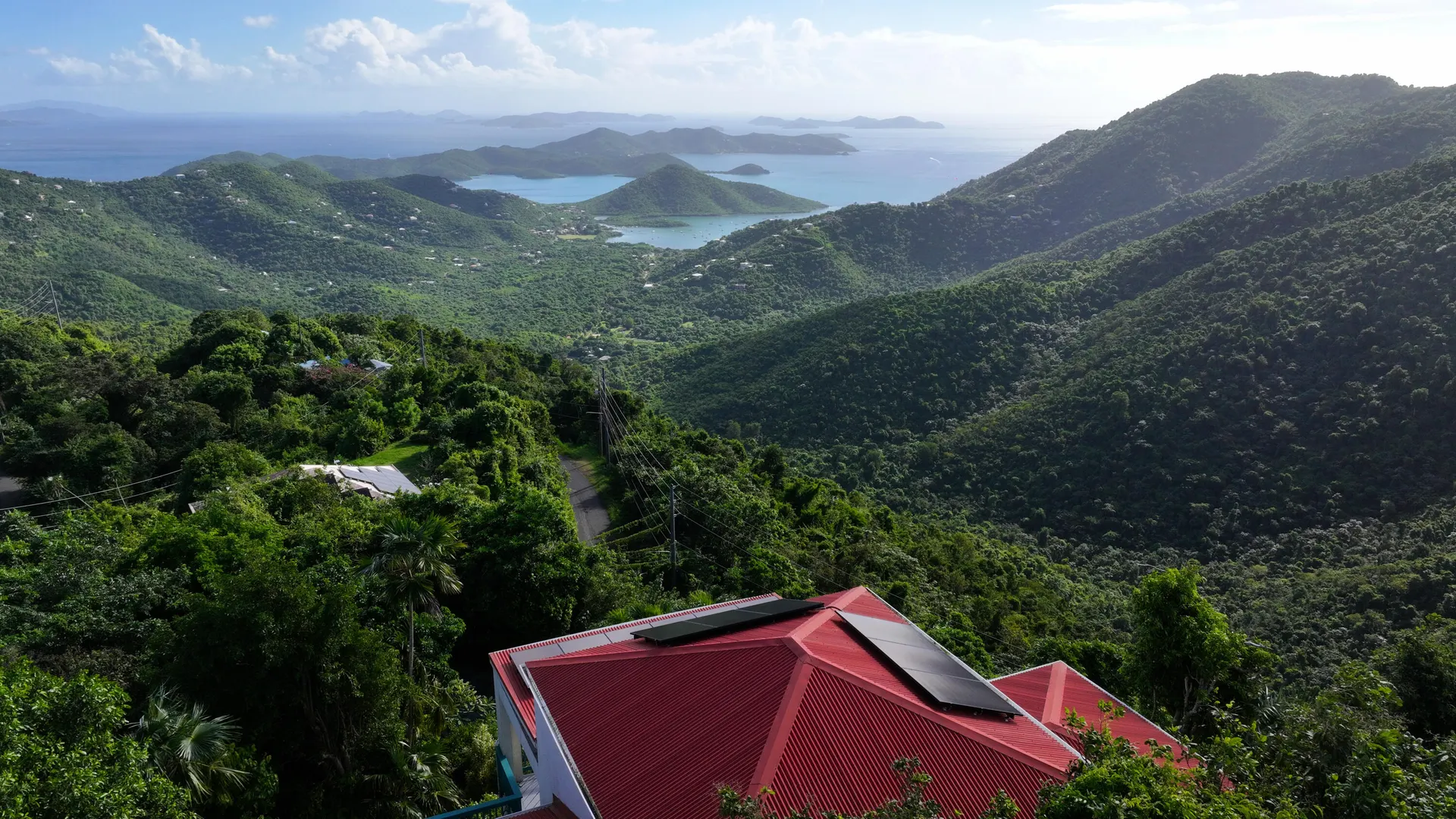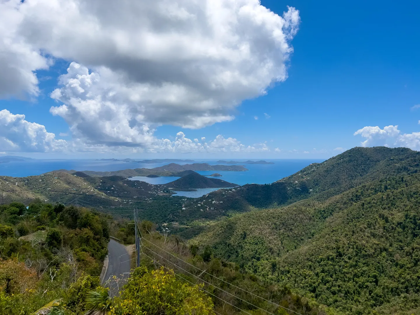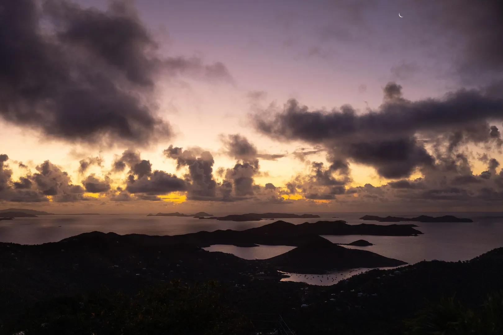 • View: British Virgin Islands, Caribbean, Down Island, East/sunrise, Harbor, Mountain, Panoramic, Valley