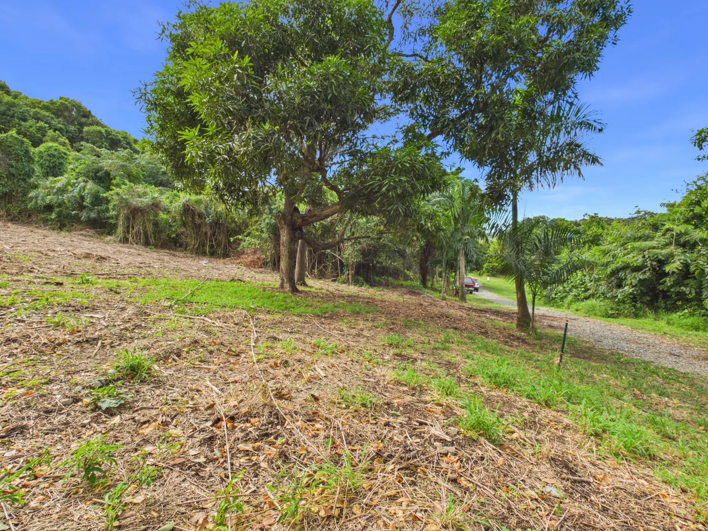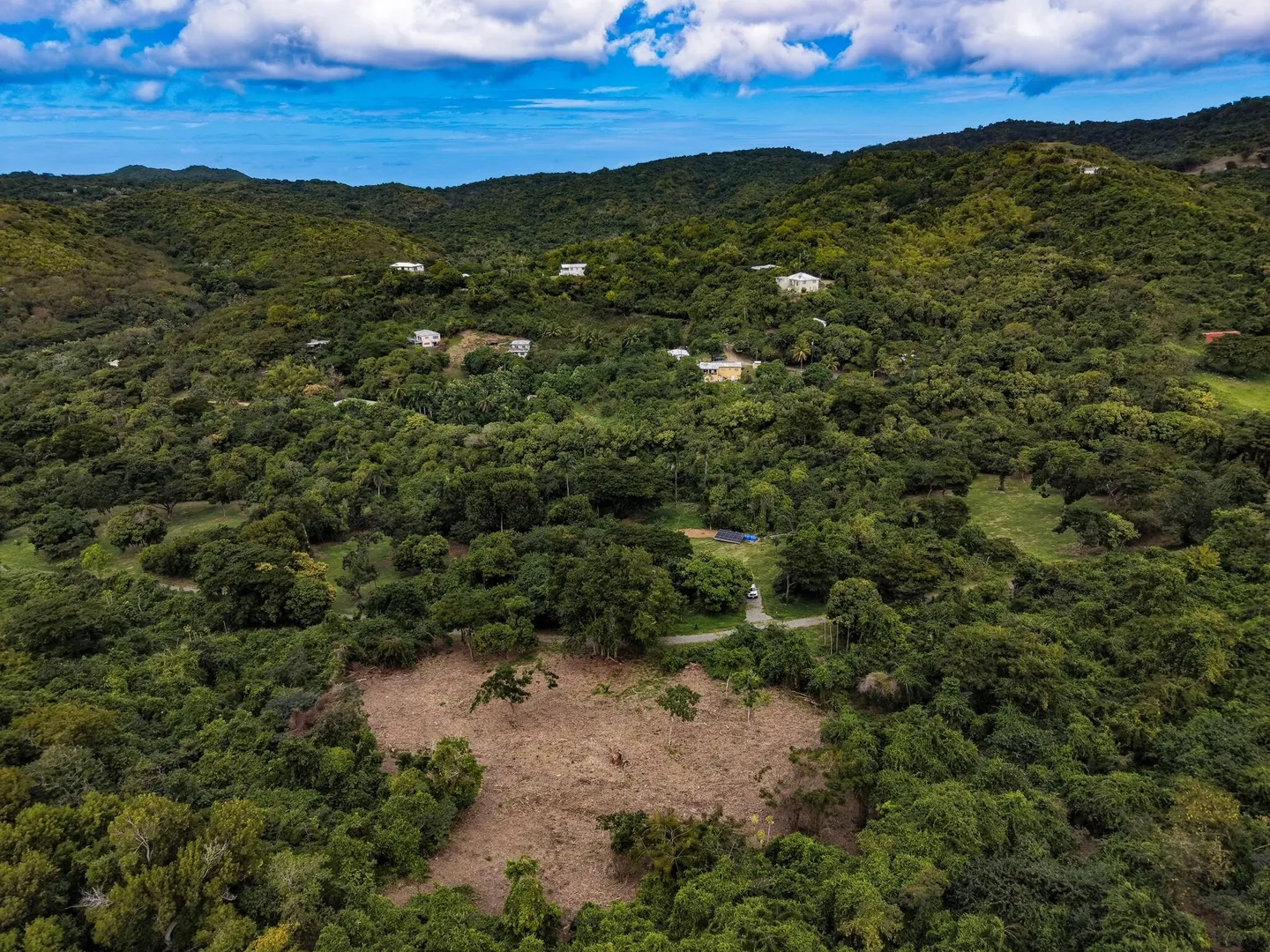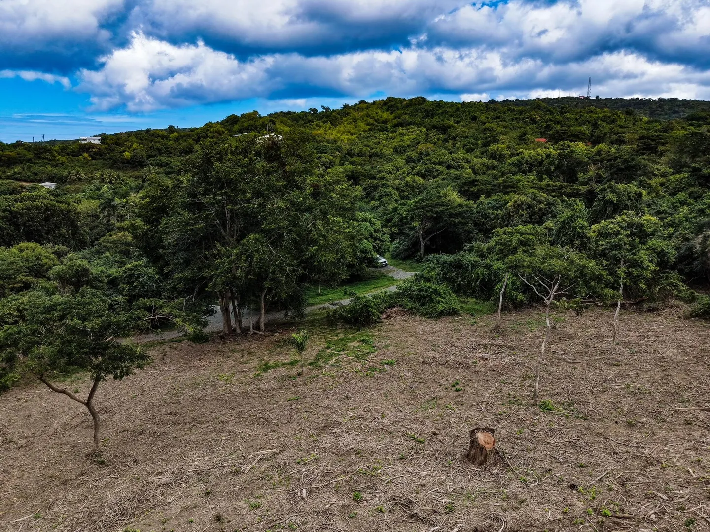 Beautiful 2.06-acre cleared lot located on a private gated road in a serene, country setting of the St. Croix Rain Forest. This property features mature shade trees and elegant Royal Palms, offering a perfect blend of open space and natural beauty. Zoned A-2 with no covenants or restrictions, providing flexibility for your dream home, small farm, or island retreat. Three sides of the lot have mature vegetation left in place to give the new owners some privacy (Can be cleared by new owners). HOA maintains the road and gate, ensuring a well-kept and secure entrance. Enjoy expansive views of the valley and rolling hills, just minutes from the popular Domino Club, local markets, and the west end beaches. Boundaries are marked for easy viewing; buyer responsible for survey.