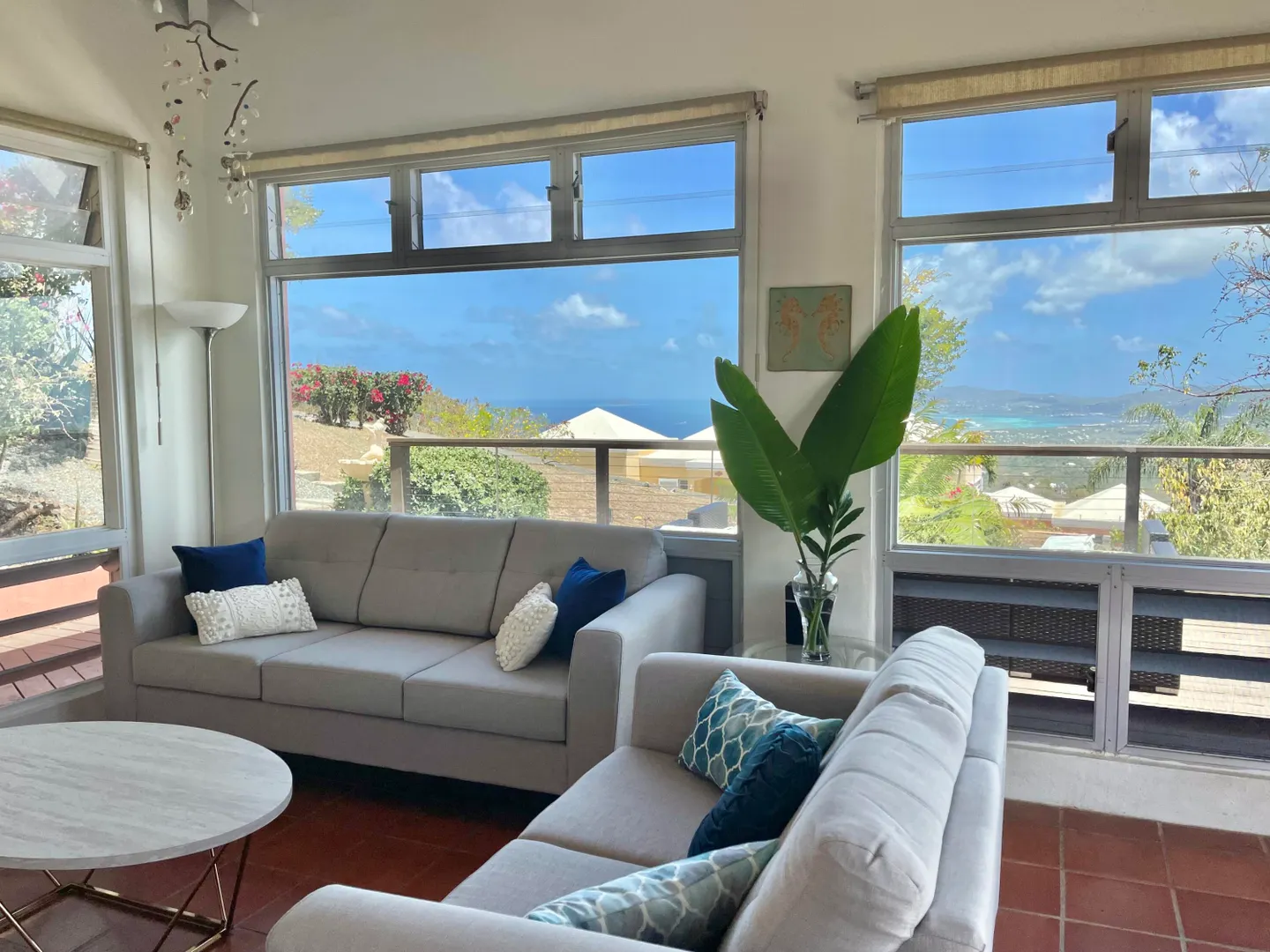Are you looking for a beautiful Caribbean home with stunning views? This custom built and updated 3 bedroom, 3 bathroom home is nestled in the hills above the north shore close to diving at Cane Bay and beautiful beaches. It features large picture windows with panoramic views, high ceilings throughout the house and an updated kitchen. The outdoor deck wraps around the front of the house to the pool- lots of space to lounge and to entertain. The downstairs studio apartment has been partly renovated and offers a great space for visiting guests.The house is net metered with an 8kw solar system so you won't have to worry about high WAPA bills. An 11KW generator provides backup power for the entire home. For more information on features and updates done, please see documents and supplements