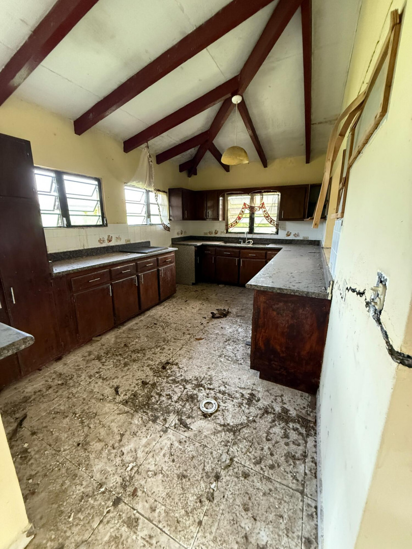 Damaged concrete home on a corner lot in Williams Delight, offering great potential for a full renovation. Located at the edge of the neighborhood with no back neighbors. Great potential for someone looking for a fixer-upper project.