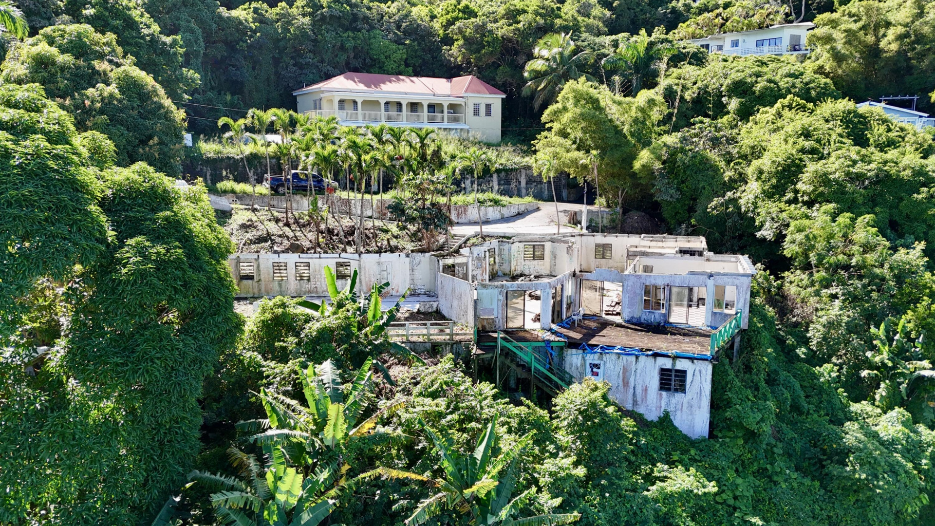 Storm-Damaged Duplex with Stunning Magen's Bay Views - Sold As-Is.This once 3 bedroom 3 bathroom duplex offers breathtaking panoramic views of Magen's Bay and down-island, providing the perfect canvas for investors or anyone ready to create their dream property. The home was storm-damaged by Hurricanes Irma & Maria and has been demoed down to the concrete, giving you a clean slate to rebuild.The property includes: Two cisterns that appear to be holding water A pull-through driveway with a parking pad in place Septic tank on siteSold as-is, this property is an incredible opportunity to design a custom home with unmatched views in a prime location. Buyer to independently verify all information. EVERYONE MUST SIGN A LIABILITY WAIVER.