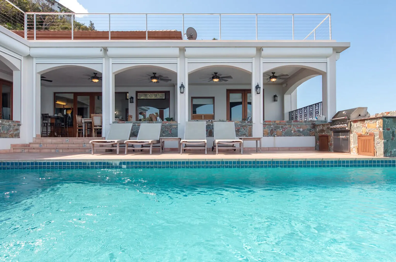 As you enter the private gates, and palm lined, circular driveway, the exceptional privacy ,and tranquility within this 4 bedroom estate and gated Mahogany Run community is apparent from the sun filled, garden courtyard entry and waterfalls enhance the arrival experience as you enter the great room. which offers a spectacular Down Island view across the shaded, covered decks, bathed in the prevailing breeze ,that invites the outdoors within. A huge master suite, Formal Dining room, which adjoins an incredible, yet separate wine room waiting for your collection. The upstairs loft offers extra space for company, as well an incredible game room and library replete with pool table. Villa Stardust also boasts a large ,private 1 bdrm guest apartment, with it's own complete kitchen ,as well a gar