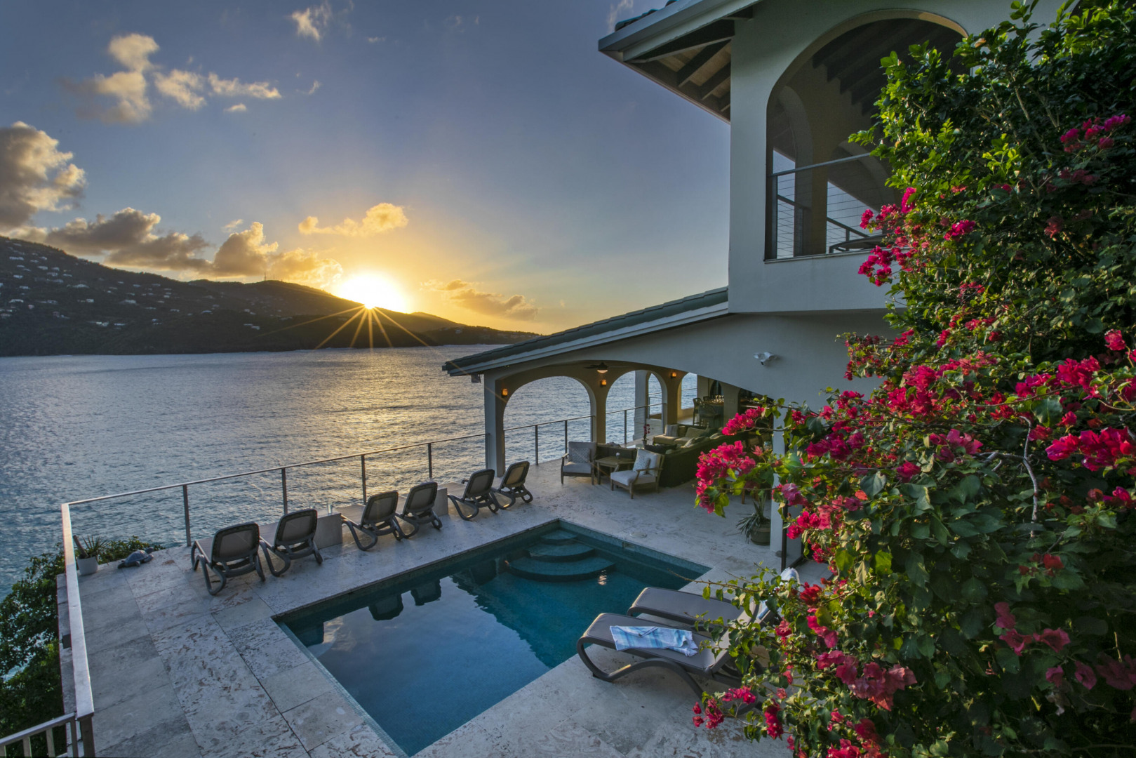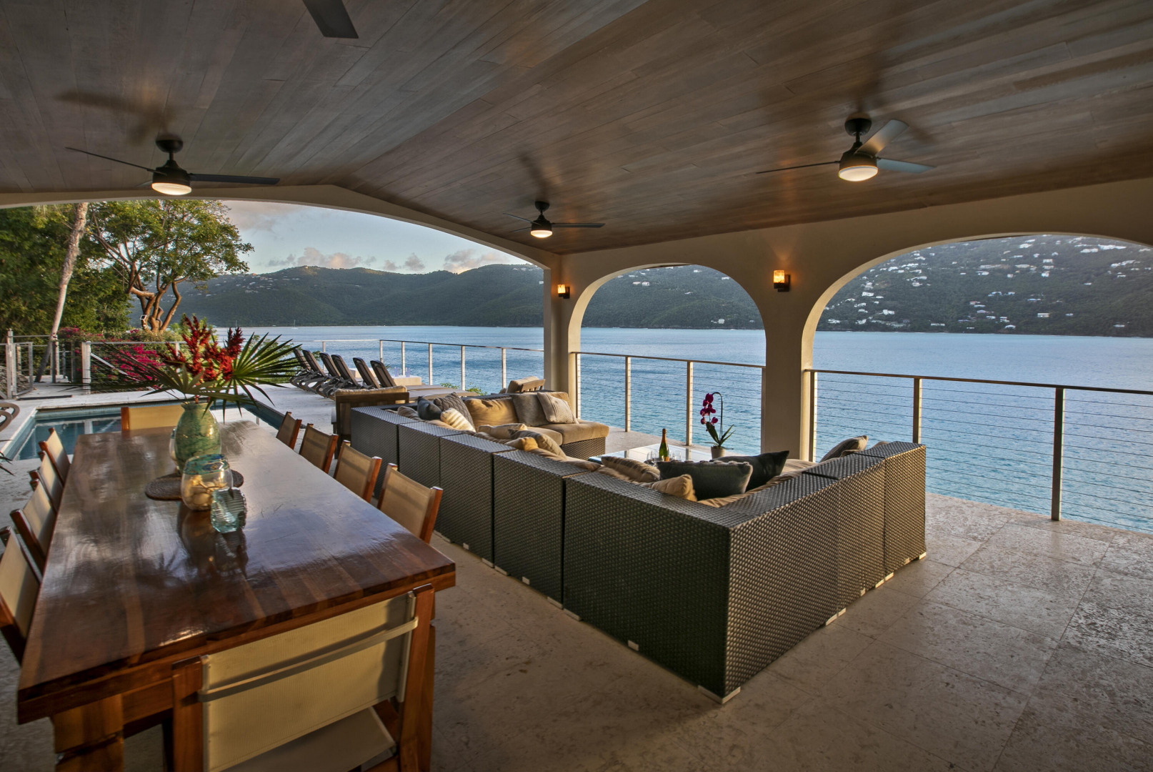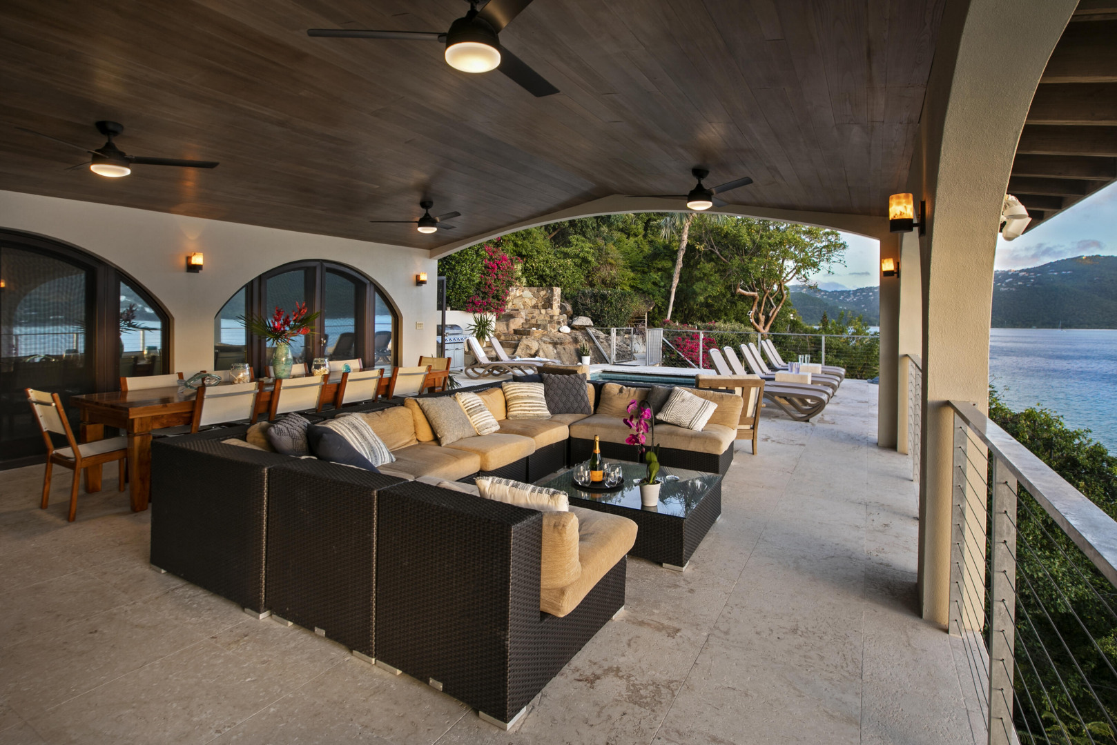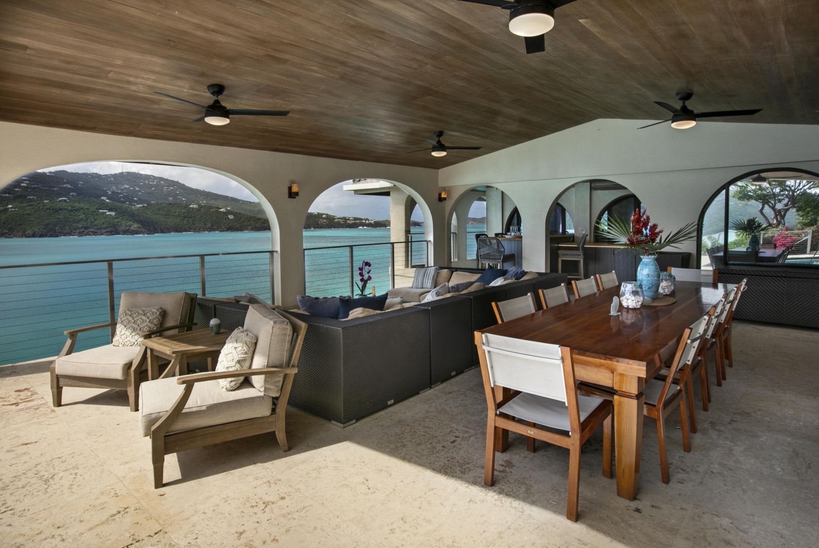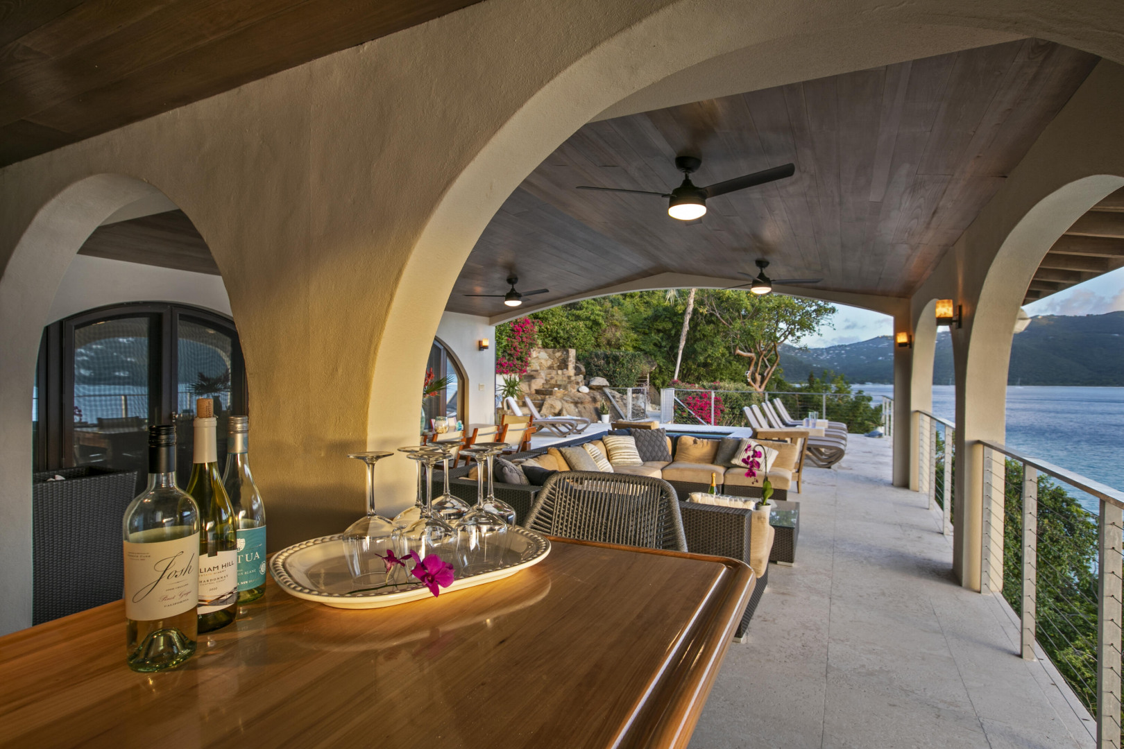 Perched on a dramatic coastline within the gated enclave of Estate Peterborg, the newly updated Villa Ohana embodies the quintessential waterfront lifestyle. The turn-key villa enjoys both exceptional privacy and unrivaled proximity to the island's most desirable amenities with a sprawling pool deck, abundant gathering spaces and a brand new concrete pavilion at the water's edge. Only minutes from world-famous Magens Bay beach, the East End, and the Charlotte Amalie harborfront, the location provides an ideal balance between a serene seclusion and a convenient proximity to the very bet St Thomas has to offer.