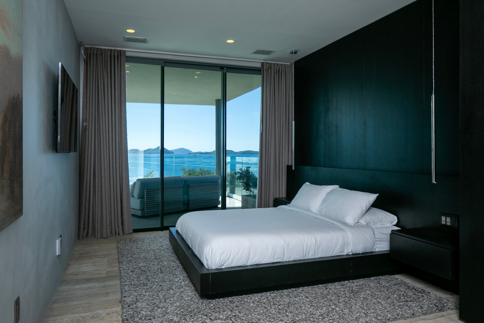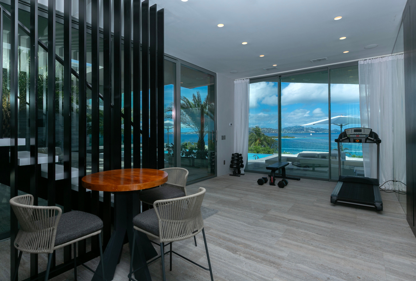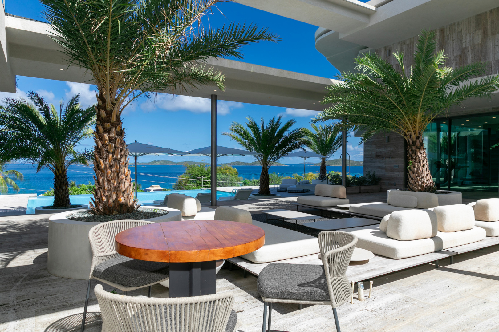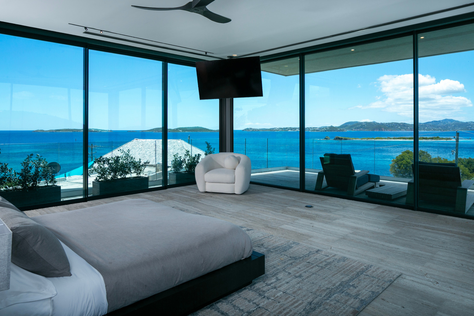 Tucked in the heart of Cruz Bay, St. John, Blue Rock is a newly built, off-grid luxury home that blends cutting-edge sustainability with sleek, modern design and unbeatable in-town convenience. Powered by 10 Tesla Powerwall's and featuring five cisterns, this eco-conscious residence offers full self-sufficiency without compromising comfort. Highlights include a chef’s kitchen with Sub-Zero and Wolf appliances, a private master suite with elevator access, dual showers and its own garage, plus a separate guest wing with three bedrooms, a gym and a kitchenette. Floor-to-ceiling glass opens to panoramic views, a beach-entry infinity pool and an outdoor lounge built for entertaining. Every inch has been crafted with thoughtful detail, from smart systems to designer finishes—Blue Rock is truly a one-of-a-kind island retreat.