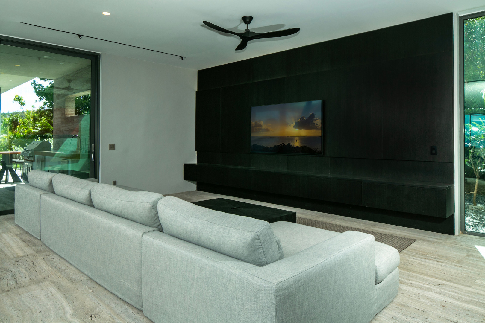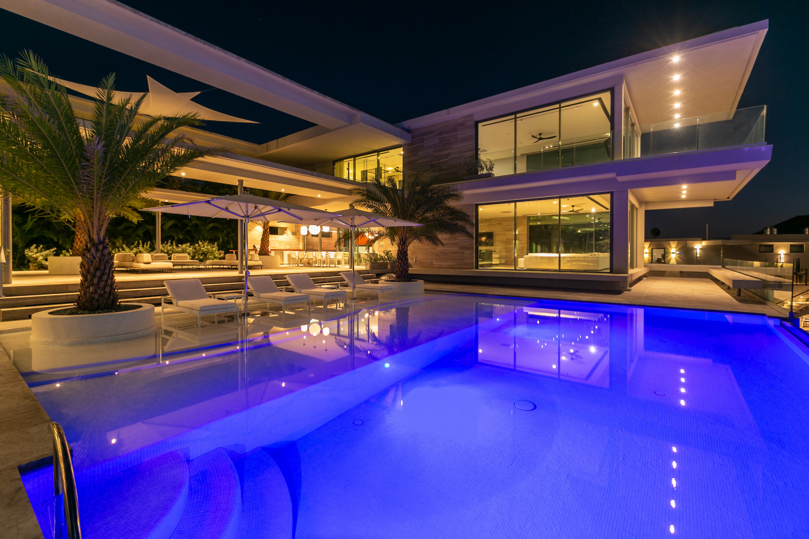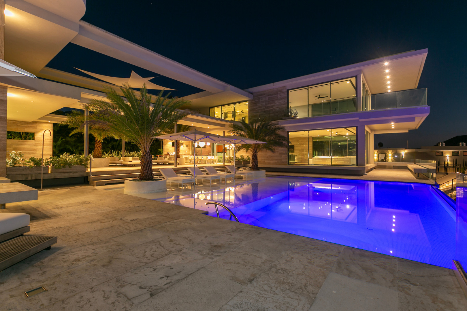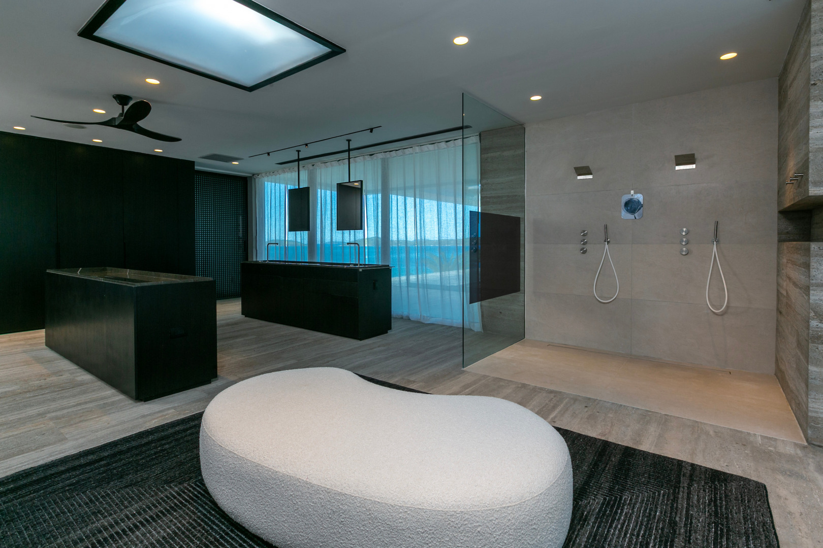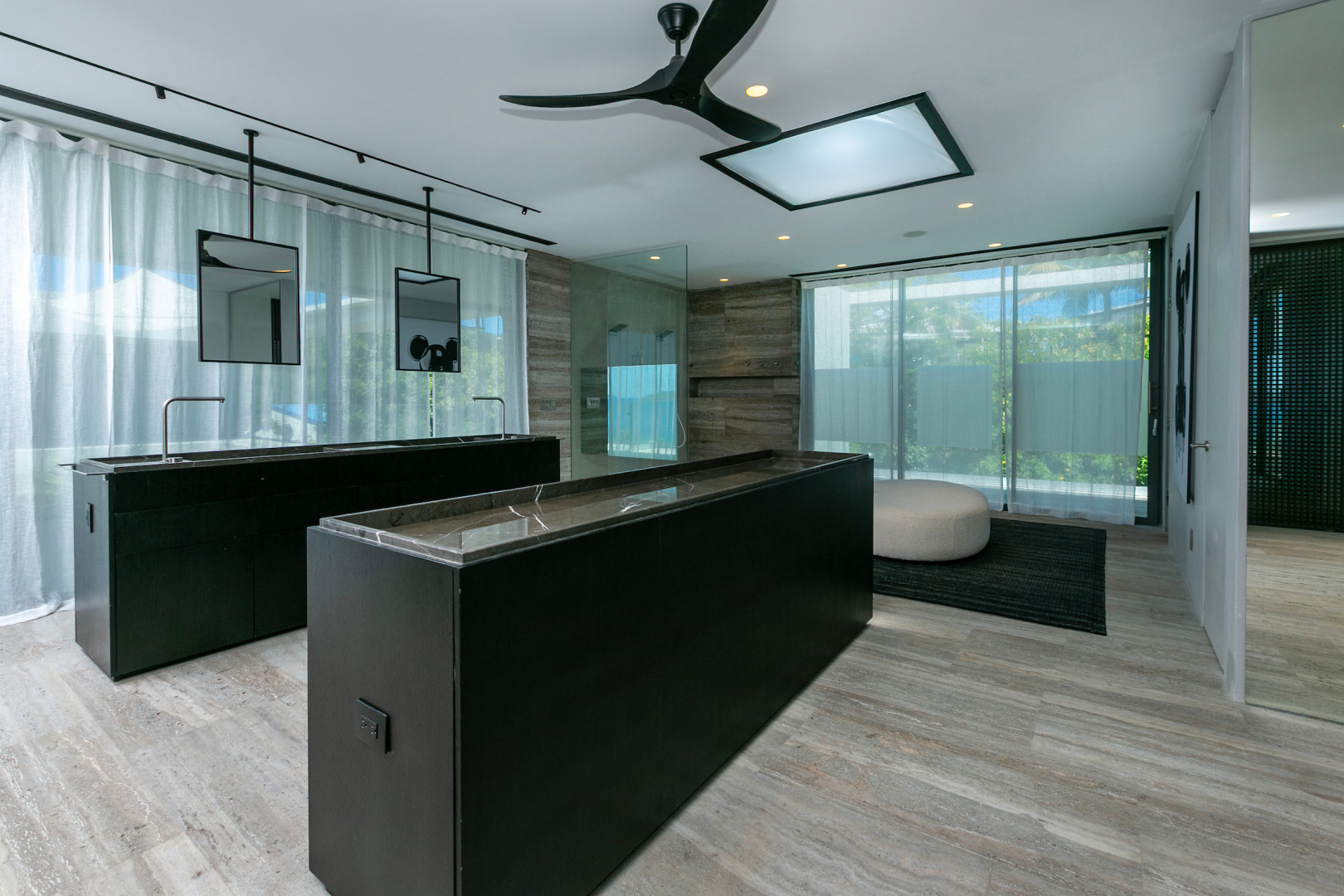 Tucked in the heart of Cruz Bay, St. John, Blue Rock is a newly built, off-grid luxury home that blends cutting-edge sustainability with sleek, modern design and unbeatable in-town convenience. Powered by 10 Tesla Powerwall's and featuring five cisterns, this eco-conscious residence offers full self-sufficiency without compromising comfort. Highlights include a chef’s kitchen with Sub-Zero and Wolf appliances, a private master suite with elevator access, dual showers and its own garage, plus a separate guest wing with three bedrooms, a gym and a kitchenette. Floor-to-ceiling glass opens to panoramic views, a beach-entry infinity pool and an outdoor lounge built for entertaining. Every inch has been crafted with thoughtful detail, from smart systems to designer finishes—Blue Rock is truly a one-of-a-kind island retreat.