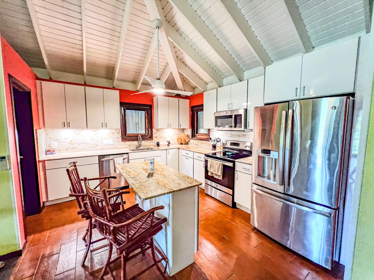 Welcome to paradise! This beautiful split level condo featuring 3 bedrooms all with attached bathrooms , living area with vaulted ceilings and AC throughout.Relax on the large wrap around porch overlooking the Carambola Golf course.These units have a generator as well!Pet friendly. Come see your Island oasis today!