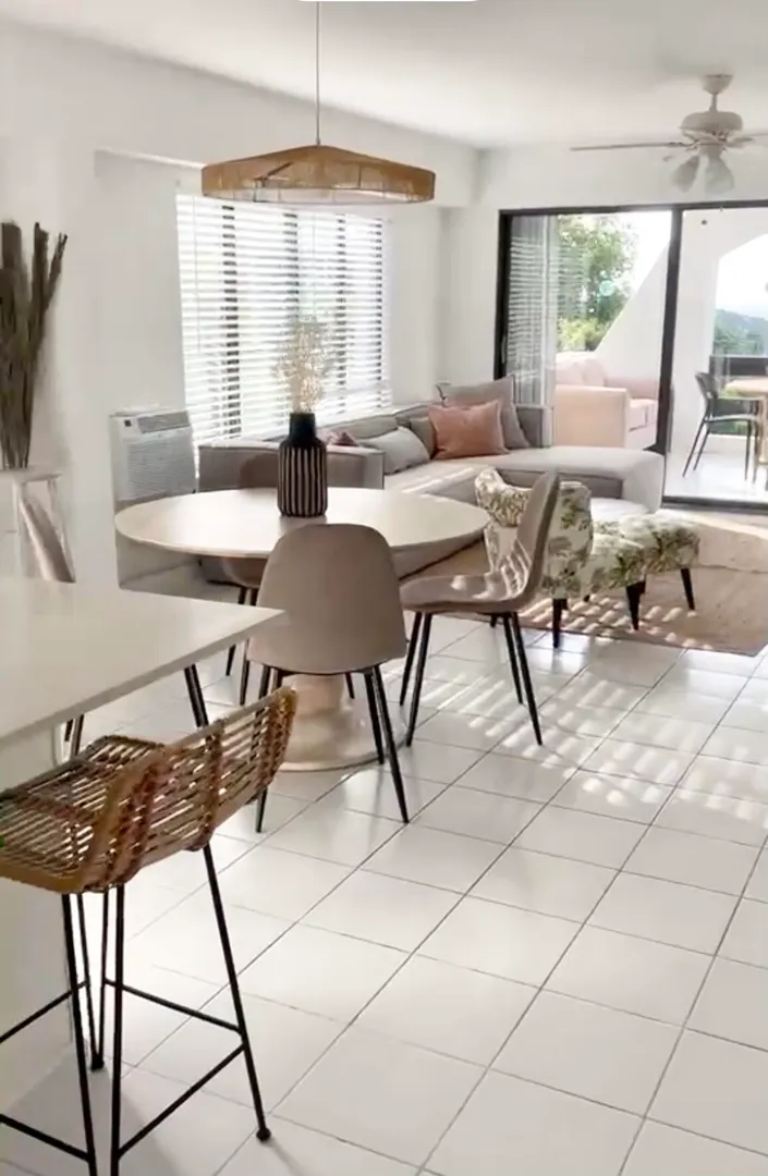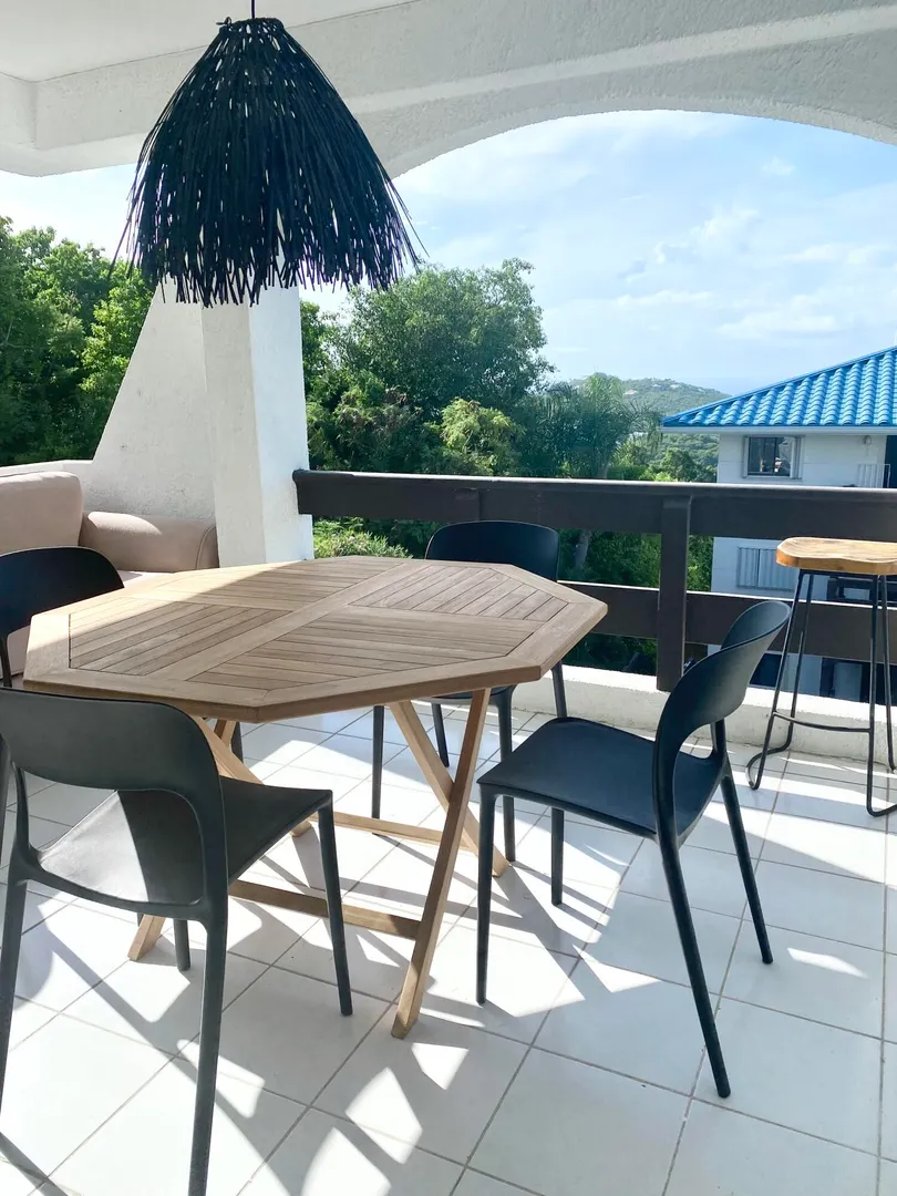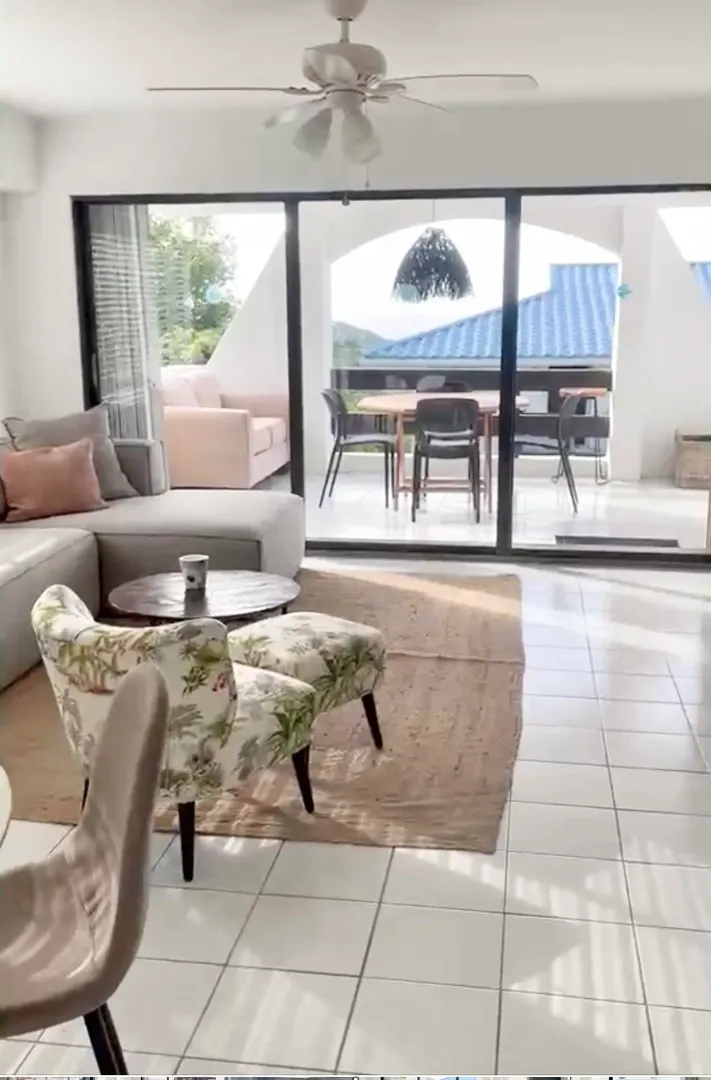 Live your best island life in this completely remodeled and professionally decorated condo! Featuring 2 bedrooms, 2 bathrooms, an open concept kitchen and living/ dining area and a spacious covered balcony. Enjoy tons of natural light and modern furnishings hand picked by A.L.L. Interiors, which is one of the premier design companies on island. Centrally located for convenience you are a short drive to Red Hook, Tutu or downtown and minutes away from world famous Magens Bay Beach. Palm Gardens also has a generous sized pool and BBQ area. This is a great complex to call home or keep as an investment property renting long or short term. Currently on a long term lease generating $4100/ month.