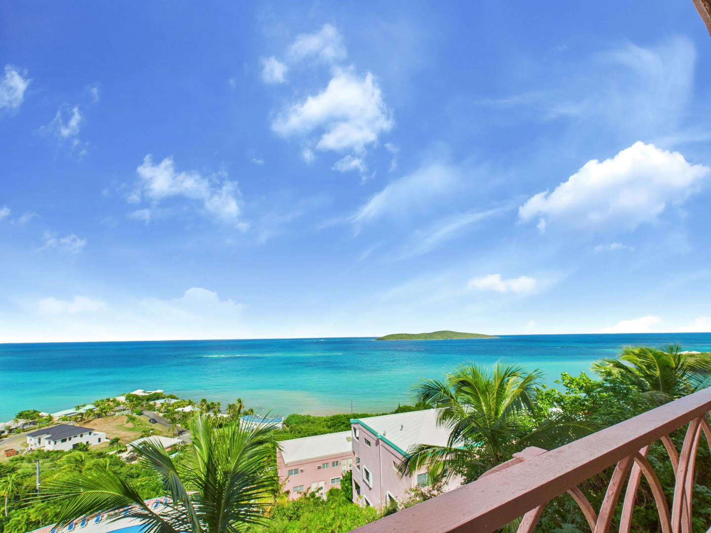 Soak in unforgettable Caribbean blues from this bright and breezy 2-bedroom, 2.5-bath condo in the coveted G Building--perfectly positioned mid-complex for some of the most expansive, jaw-dropping views from Buck Island to Christiansted Harbour.Inside, enjoy spacious bedrooms, each with its own en suite bathroom, plus the convenience of a half bath upstairs--perfect for guests. The updated kitchen and bathrooms pair beautifully with the crisp, airy layout that highlights the views from every angle. Two inviting galleries capture the island breeze for effortless indoor-outdoor living. You'll also appreciate the in-unit washer and dryer and no exterior stairs, making daily life easy and comfortable.The community has a sparkling, resort style pool with umbrellas, plenty of lounge chairs,and an added bonus of it being heated in the winter to maximize comfort and enjoyment. If you're a socializer- you can catch up with your neighbors at the poolside cocktail parties and the holiday gatherings. For walking enthusiasts, an almost ½-mile loop around the complex with rolling hills offers a scenic way to stay active while taking in the views. When you're ready to for a delicious lunch or dinner, the popular Goat Soup and Whiskey restaurant is right onsite from December-April! One of the islands favorite restaurants- just steps away! No need to worry about where you'll keep your extra items or beach gear- onsite storage units are also available to rent for just $15/month (as available). Enjoy the added convenience of mail and package delivery down at the office!