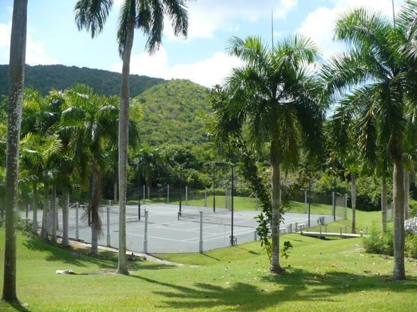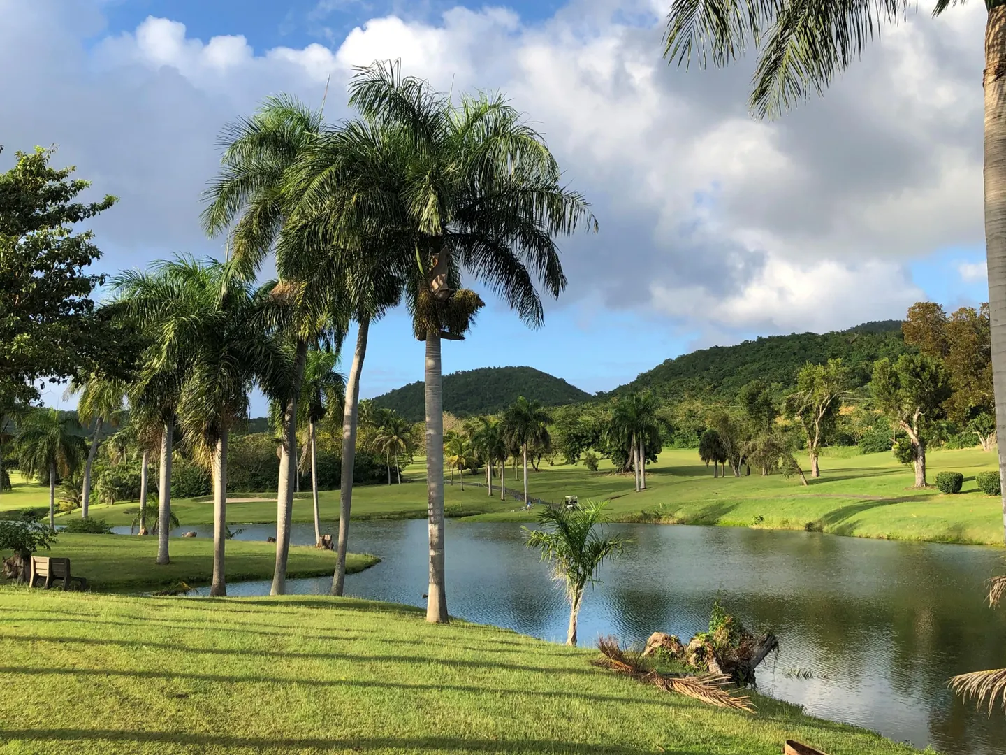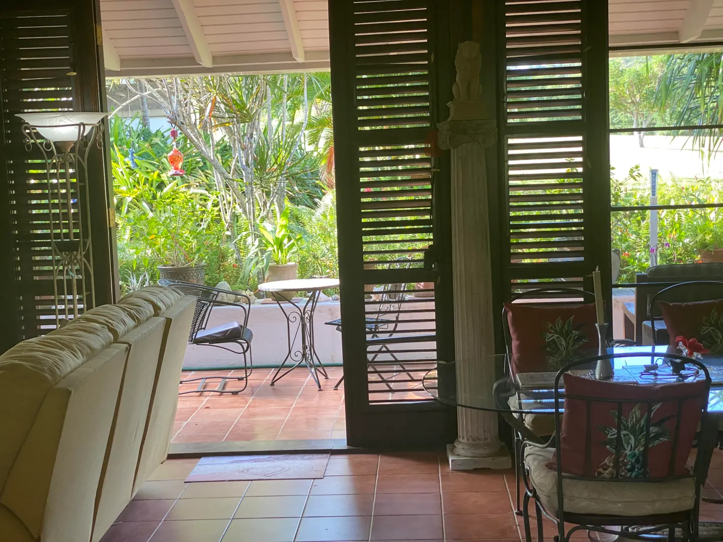 One level villa in coveted Sweet Lime I. This 2-bedroom retreat is set back from the ninth fairway of the championship Robert Trent Jones golf course affording privacy and surrounding you with lush tropical plantings. Quality time will be spent on the lovely long gallery with stunning imbula wood French doors and shutters. Open floorplan, high ceilings, generous bedrooms, baths ensuite and good storage closets &, AC. Pretty granite kitchen, lots of fans and an automatic generator. Amenities include pools, croquet, 5 tennis courts, 24 hr guard, and pets OK. Mins to sandy beaches and world-class scuba diving. HOA covers exterior building maintenance, landscaping, water (no water bill), insurance, road, waste treatment plant, prop mgr, and shutter install. Its a lifestyle that you will love