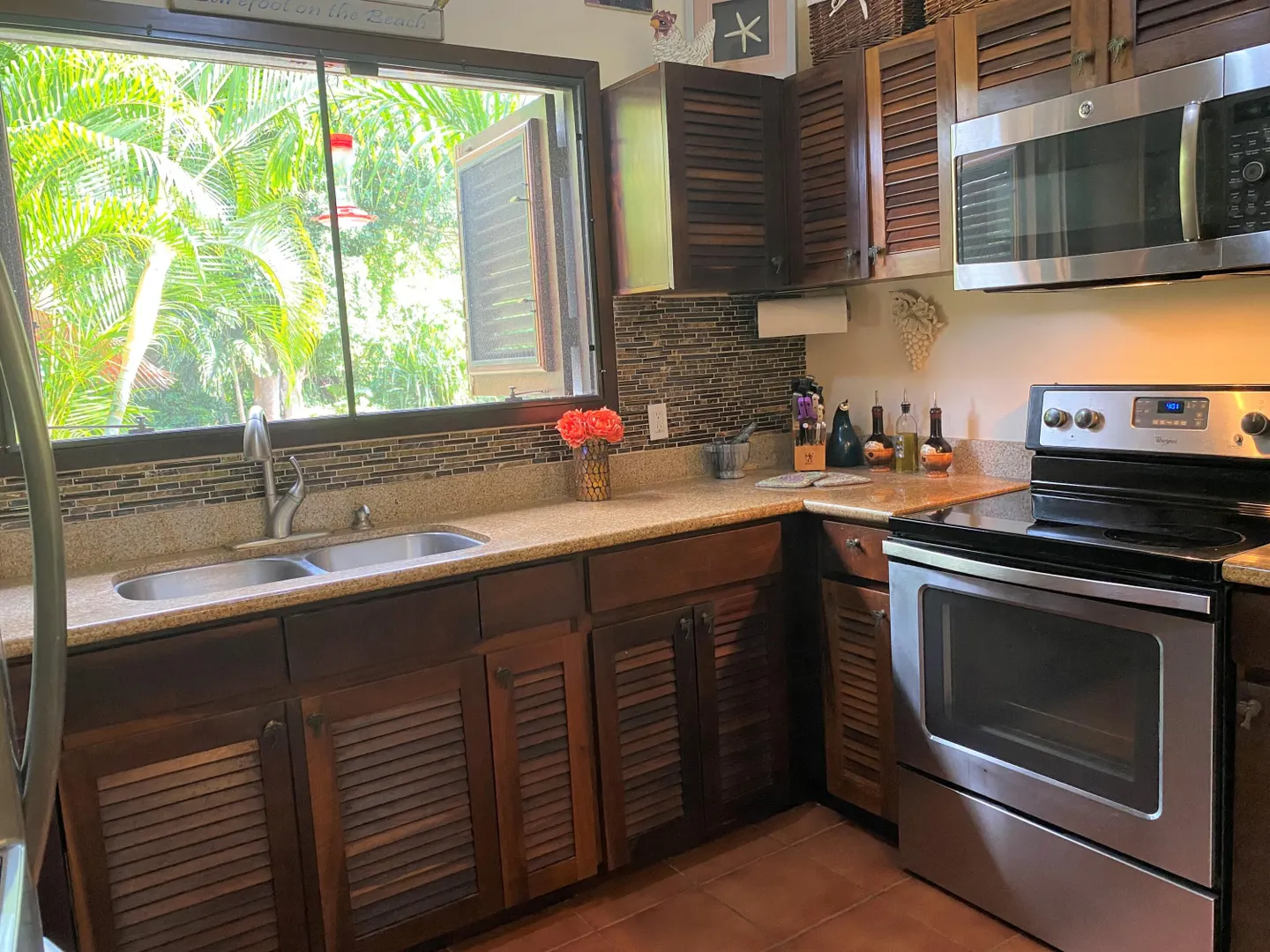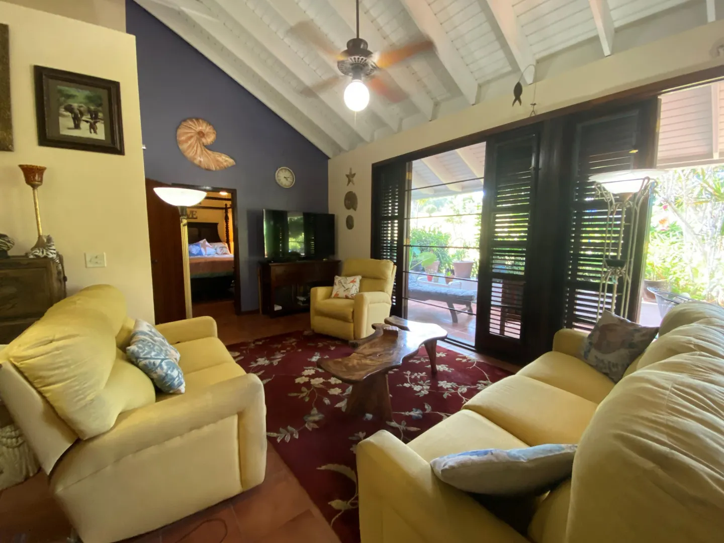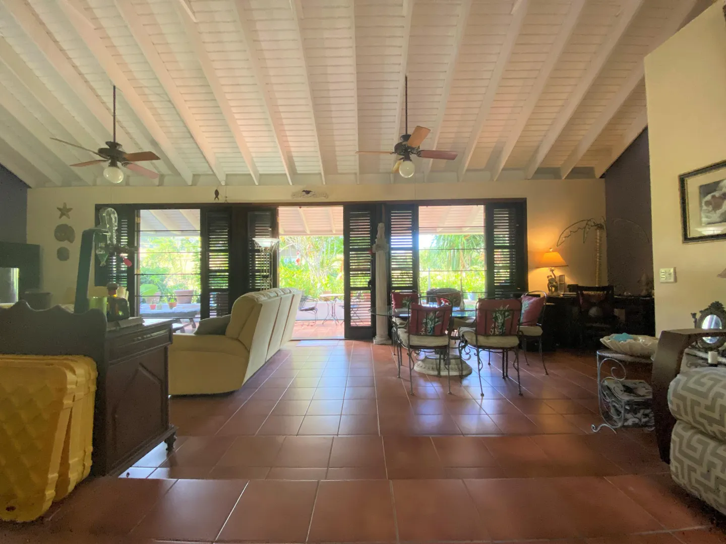 One level villa in coveted Sweet Lime I. This 2-bedroom retreat is set back from the ninth fairway of the championship Robert Trent Jones golf course affording privacy and surrounding you with lush tropical plantings. Quality time will be spent on the lovely long gallery with stunning imbula wood French doors and shutters. Open floorplan, high ceilings, generous bedrooms, baths ensuite and good storage closets &, AC. Pretty granite kitchen, lots of fans and an automatic generator. Amenities include pools, croquet, 5 tennis courts, 24 hr guard, and pets OK. Mins to sandy beaches and world-class scuba diving. HOA covers exterior building maintenance, landscaping, water (no water bill), insurance, road, waste treatment plant, prop mgr, and shutter install. Its a lifestyle that you will love