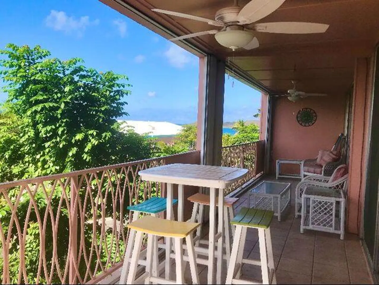 This beautiful 3 bedroom 2 bathroom condo has it all--AC throughout, amazing views of Buck Island, updated kitchen and bathrooms, cable TV, Wifi, community pool and a back-up generator. Don't miss out on this opportunity to live in the very desirable Coakley Bay condos.