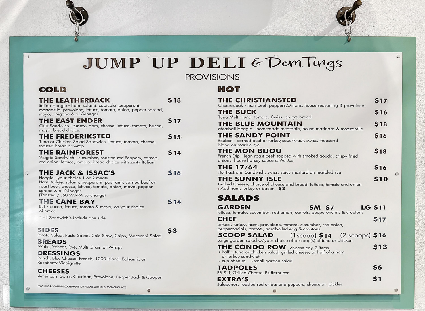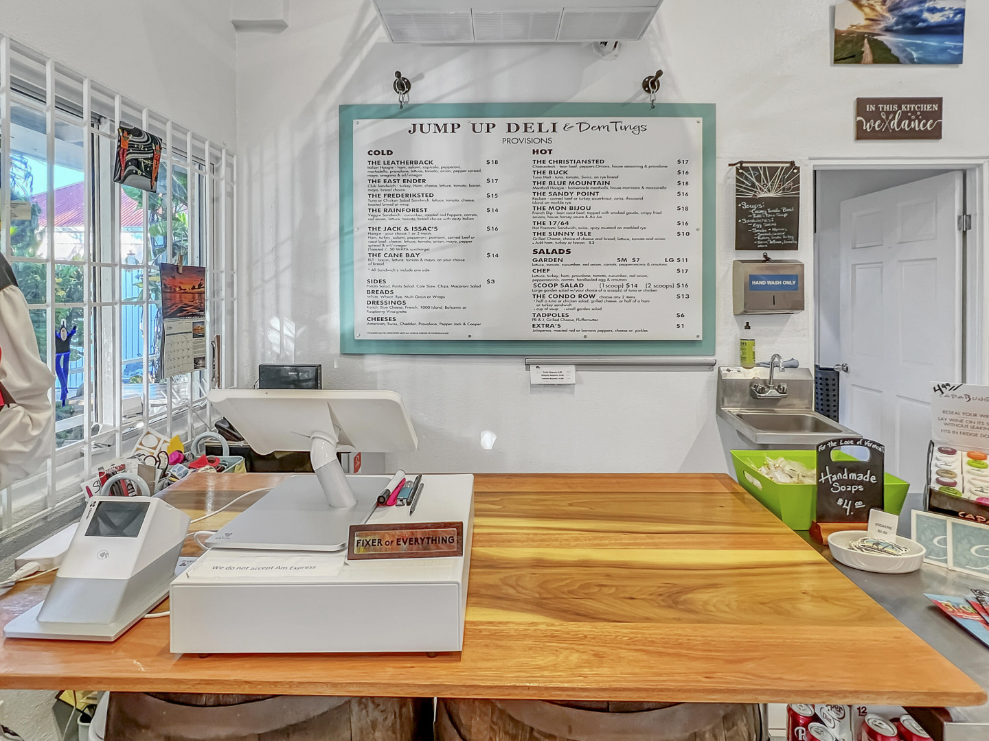 Located in the heart of downtown Christiansted, Jump Up Deli & Dem Tings is a renowned culinary gem that has captured the hearts of locals & visitors alike with food, gift items, & tropical accessories! Whether you want a yummy lunch, a beach cover-up, or a dog toy, you'll find it here! It's the perfect place to lunch & shop! There are classic deli favorites, sandwiches, salads, & soups to order to enjoy on the covered gallery with a lovely courtyard view and free wifi. Take home meats, cheeses, & salads for later. And, there are plenty of Dem Tings in the gift boutique for everyone on your list and tings for you too - tings you didn't even know you wanted! They can also put together a custom gift basket that will make your special person's flops flip! This sale is the business only.