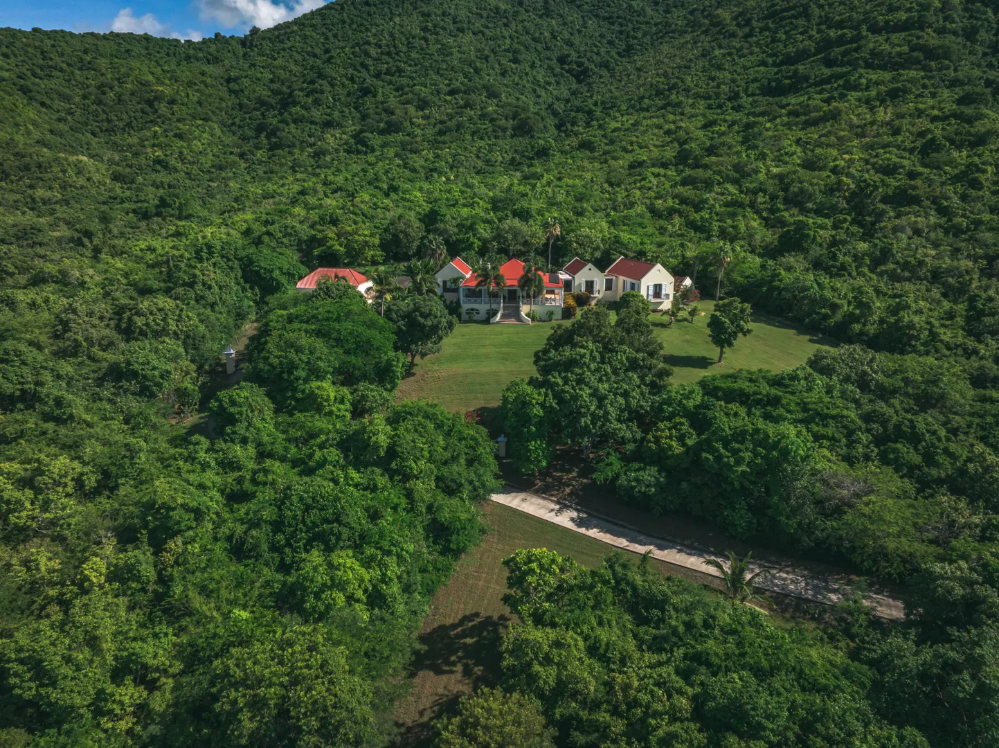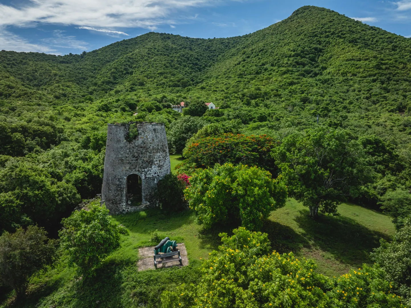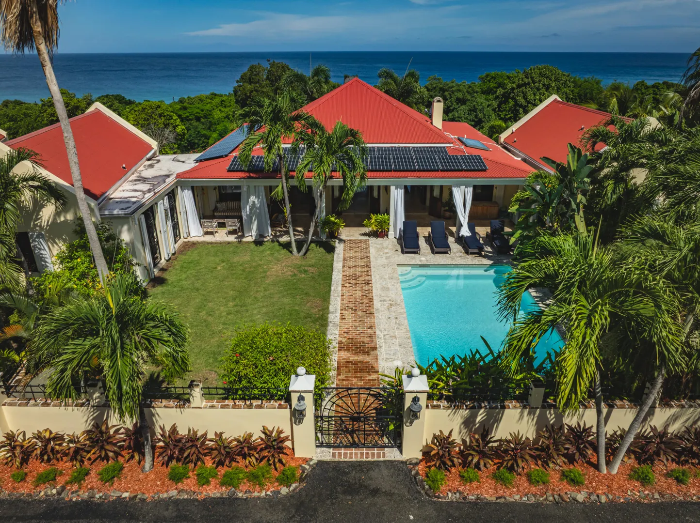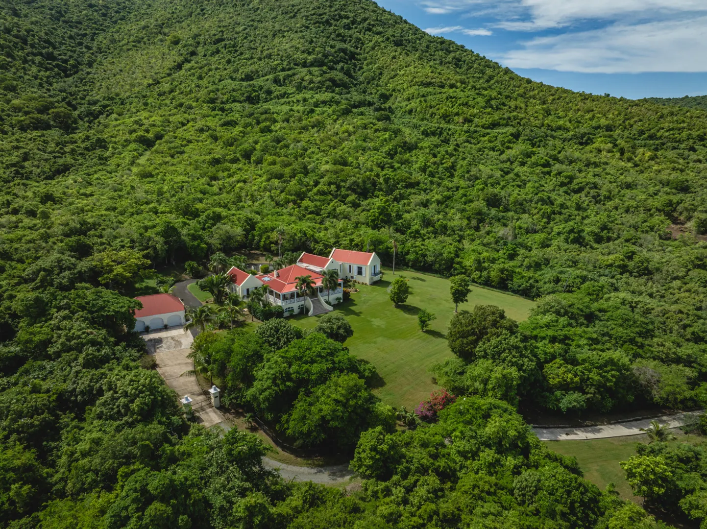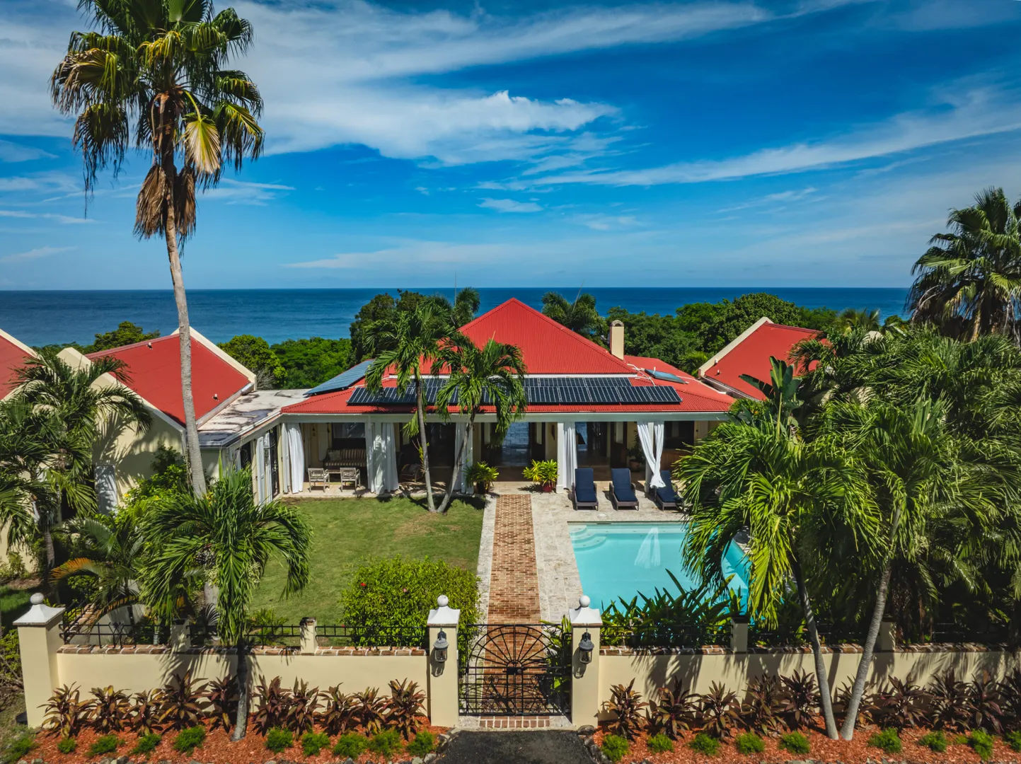 Estate Lucky Bottom: A rare piece of history in Cane Bay, this extraordinary 17.88-acre estate features a stately Greathouse with a saltwater pool and sweeping Caribbean Sea views, blending historic preservation with modern island luxury. The 4-bedroom, 4.5-bath residence, inspired by Danish colonial architecture, showcases Brazilian cherry and travertine floors, a solar power system with backup generator, and fine craftsmanship throughout. Behind the double gated entry--one at the road and another near the garage--beautifully landscaped grounds, with fruit trees, unfold across rolling hills, surrounding rare 1820 sugar-mill ruins with an intact animal slue--the only one of its kind on St. Croix. The grounds are abundant with mature specimen trees--mahogany, baobab,kapok, coconut palms, and fruiting varieties like guavaberry, banana, and Barbados cherrycreating a lush tropical landscape. The entire property is comprised of six separate parcels, offering complete control over privacy, access, and views across the estate. Ideally located near Cane Bay's beaches, diving, and dining, Estate Lucky Bottom offers timeless history, privacy, and sustainable island elegance.