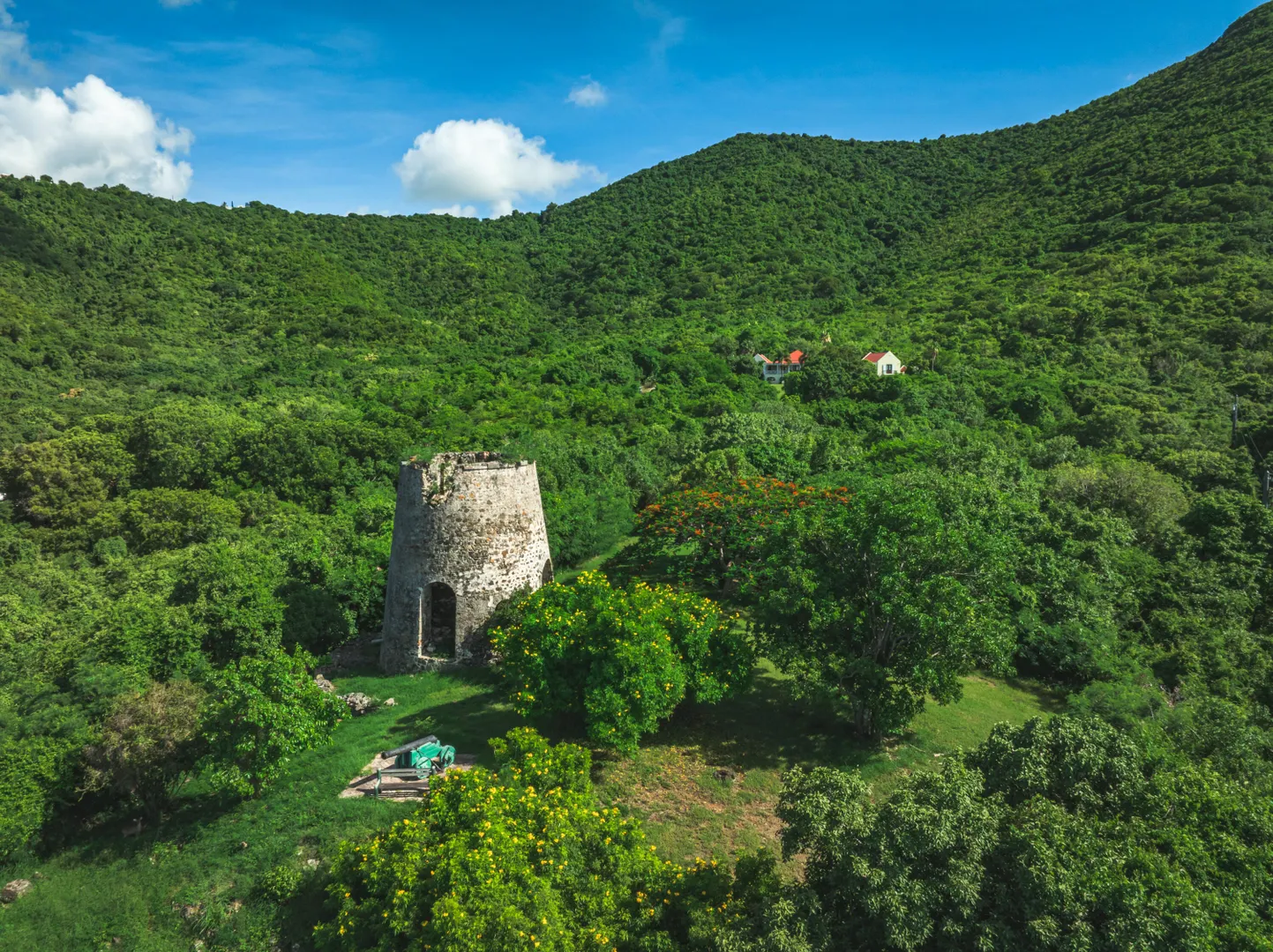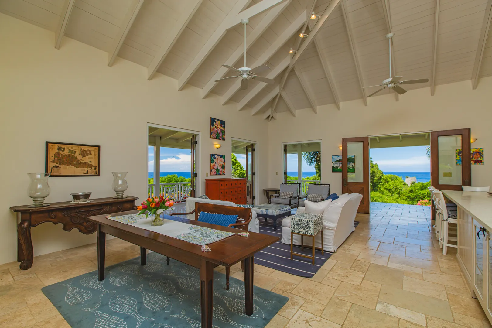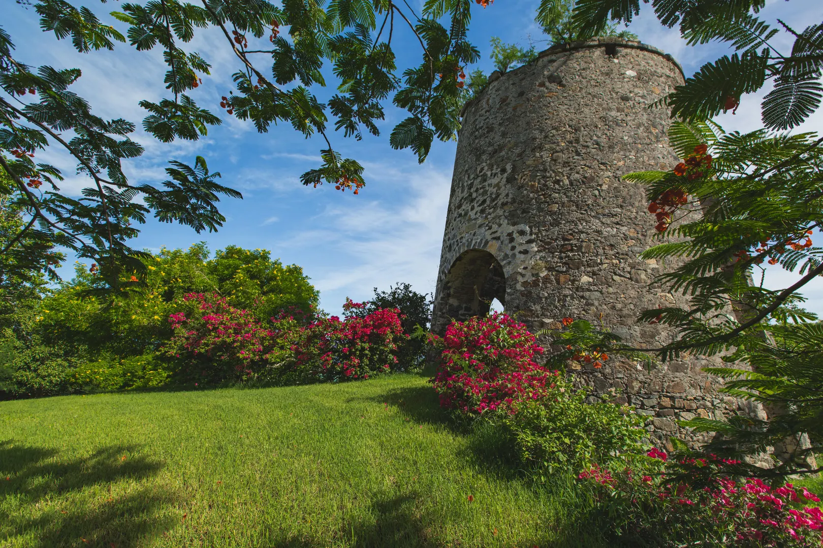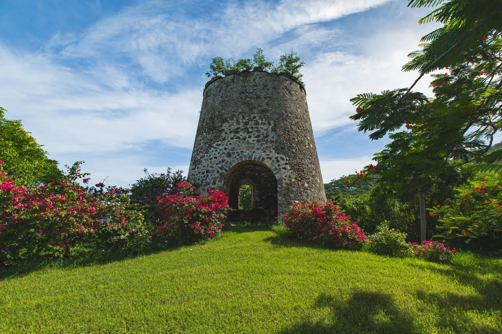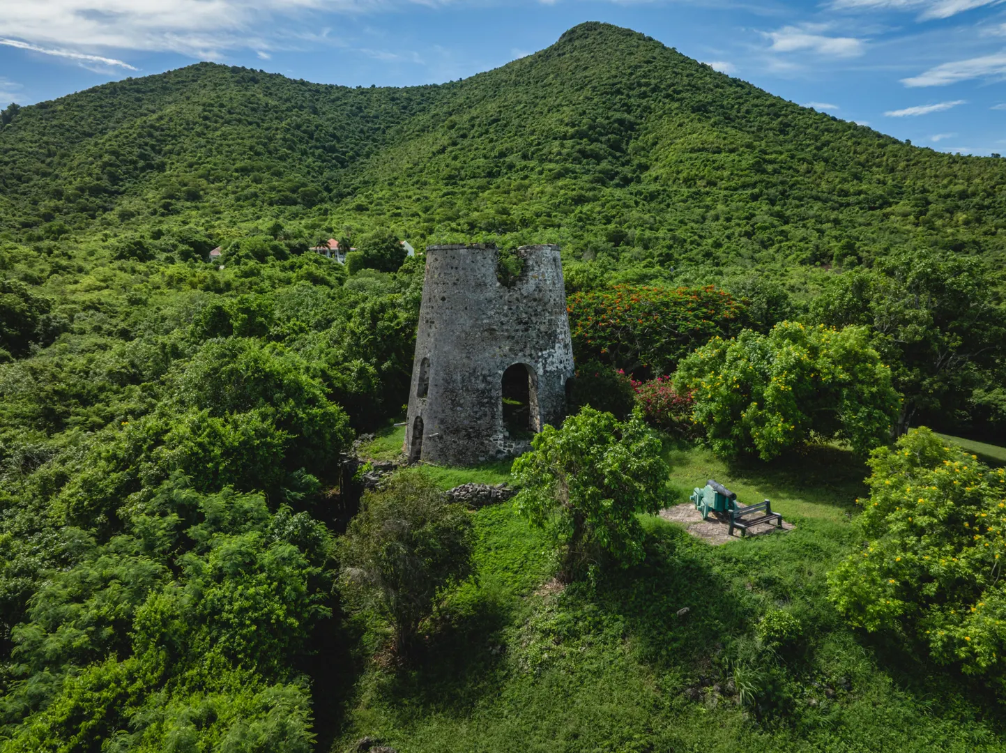 Estate Lucky Bottom: A rare piece of history in Cane Bay, this extraordinary 17.88-acre estate features a stately Greathouse with a saltwater pool and sweeping Caribbean Sea views, blending historic preservation with modern island luxury. The 4-bedroom, 4.5-bath residence, inspired by Danish colonial architecture, showcases Brazilian cherry and travertine floors, a solar power system with backup generator, and fine craftsmanship throughout. Behind the double gated entry--one at the road and another near the garage--beautifully landscaped grounds, with fruit trees, unfold across rolling hills, surrounding rare 1820 sugar-mill ruins with an intact animal slue--the only one of its kind on St. Croix. The grounds are abundant with mature specimen trees--mahogany, baobab,kapok, coconut palms, and fruiting varieties like guavaberry, banana, and Barbados cherrycreating a lush tropical landscape. The entire property is comprised of six separate parcels, offering complete control over privacy, access, and views across the estate. Ideally located near Cane Bay's beaches, diving, and dining, Estate Lucky Bottom offers timeless history, privacy, and sustainable island elegance.