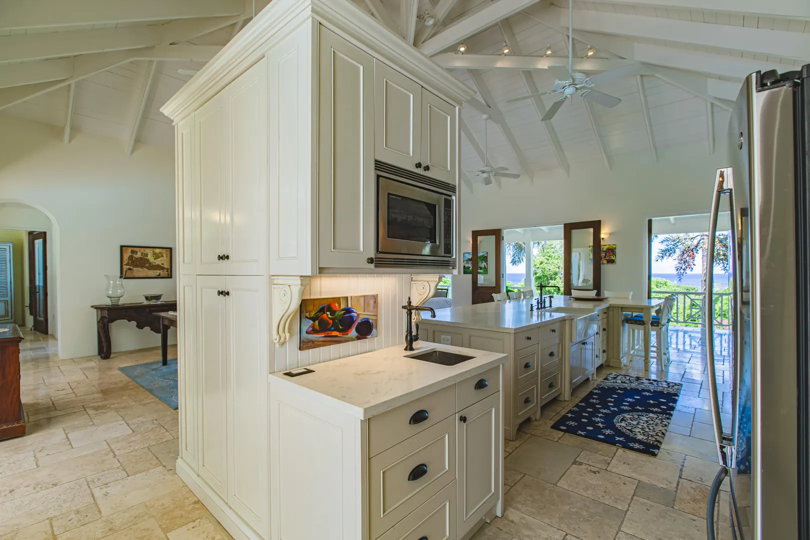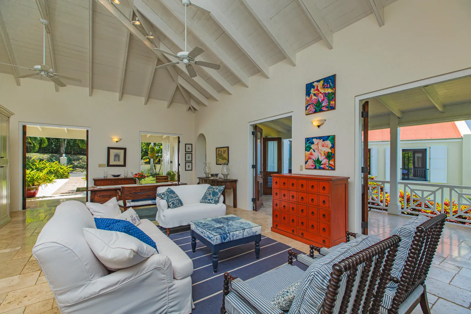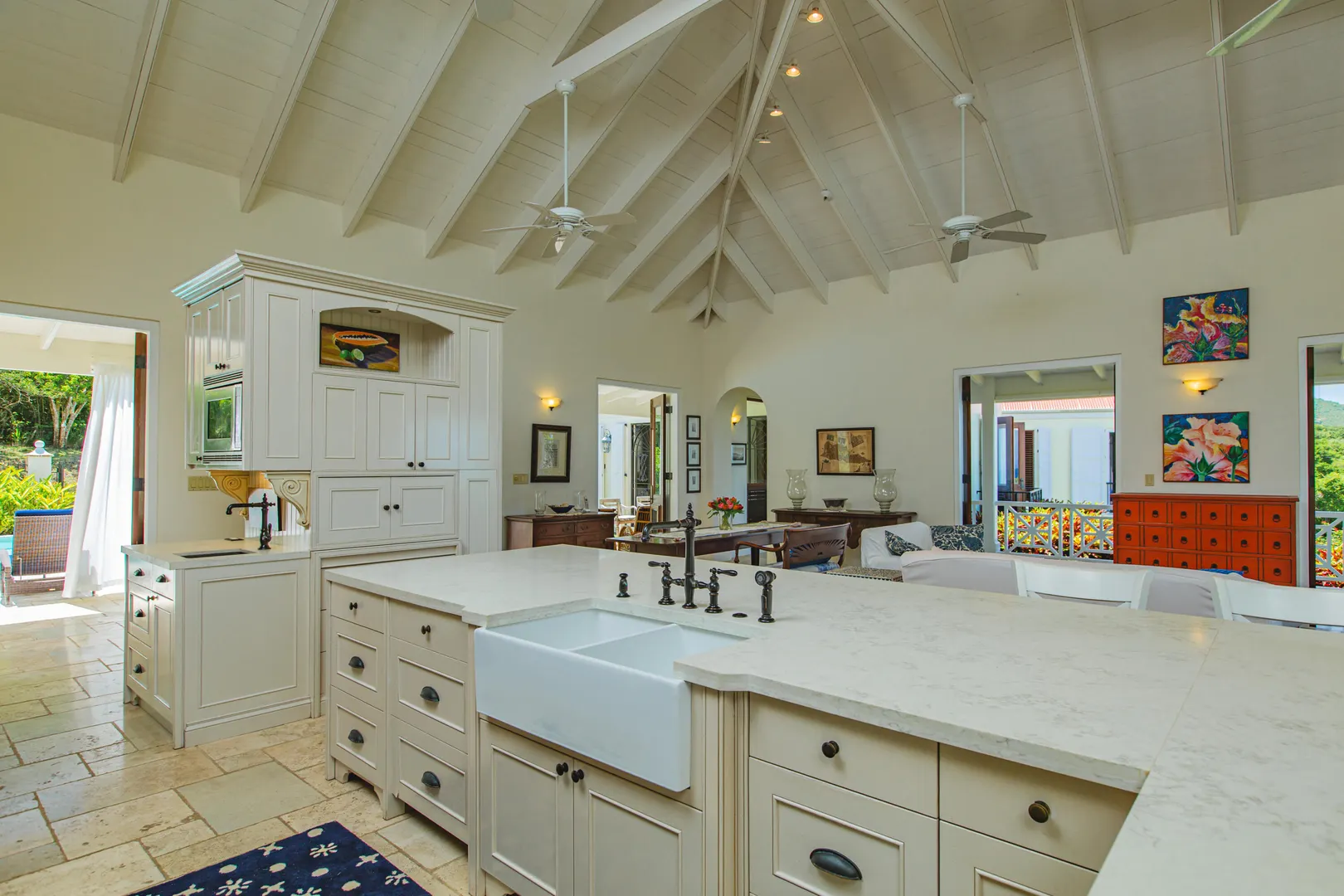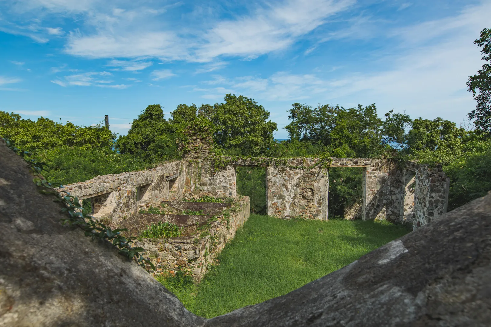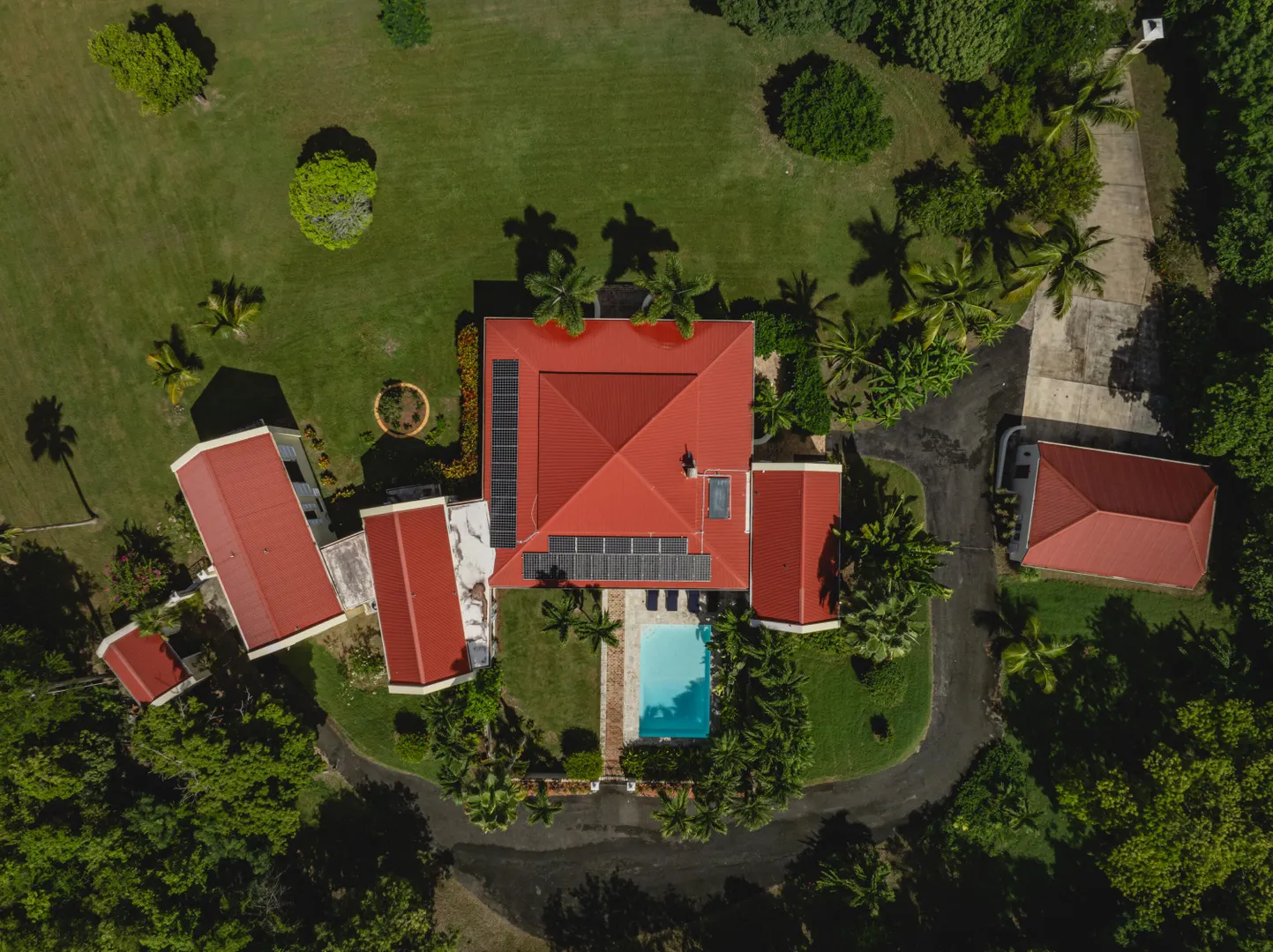 Estate Lucky Bottom: A rare piece of history in Cane Bay, this extraordinary 17.88-acre estate features a stately Greathouse with a saltwater pool and sweeping Caribbean Sea views, blending historic preservation with modern island luxury. The 4-bedroom, 4.5-bath residence, inspired by Danish colonial architecture, showcases Brazilian cherry and travertine floors, a solar power system with backup generator, and fine craftsmanship throughout. Behind the double gated entry--one at the road and another near the garage--beautifully landscaped grounds, with fruit trees, unfold across rolling hills, surrounding rare 1820 sugar-mill ruins with an intact animal slue--the only one of its kind on St. Croix. The grounds are abundant with mature specimen trees--mahogany, baobab,kapok, coconut palms, and fruiting varieties like guavaberry, banana, and Barbados cherrycreating a lush tropical landscape. The entire property is comprised of six separate parcels, offering complete control over privacy, access, and views across the estate. Ideally located near Cane Bay's beaches, diving, and dining, Estate Lucky Bottom offers timeless history, privacy, and sustainable island elegance.