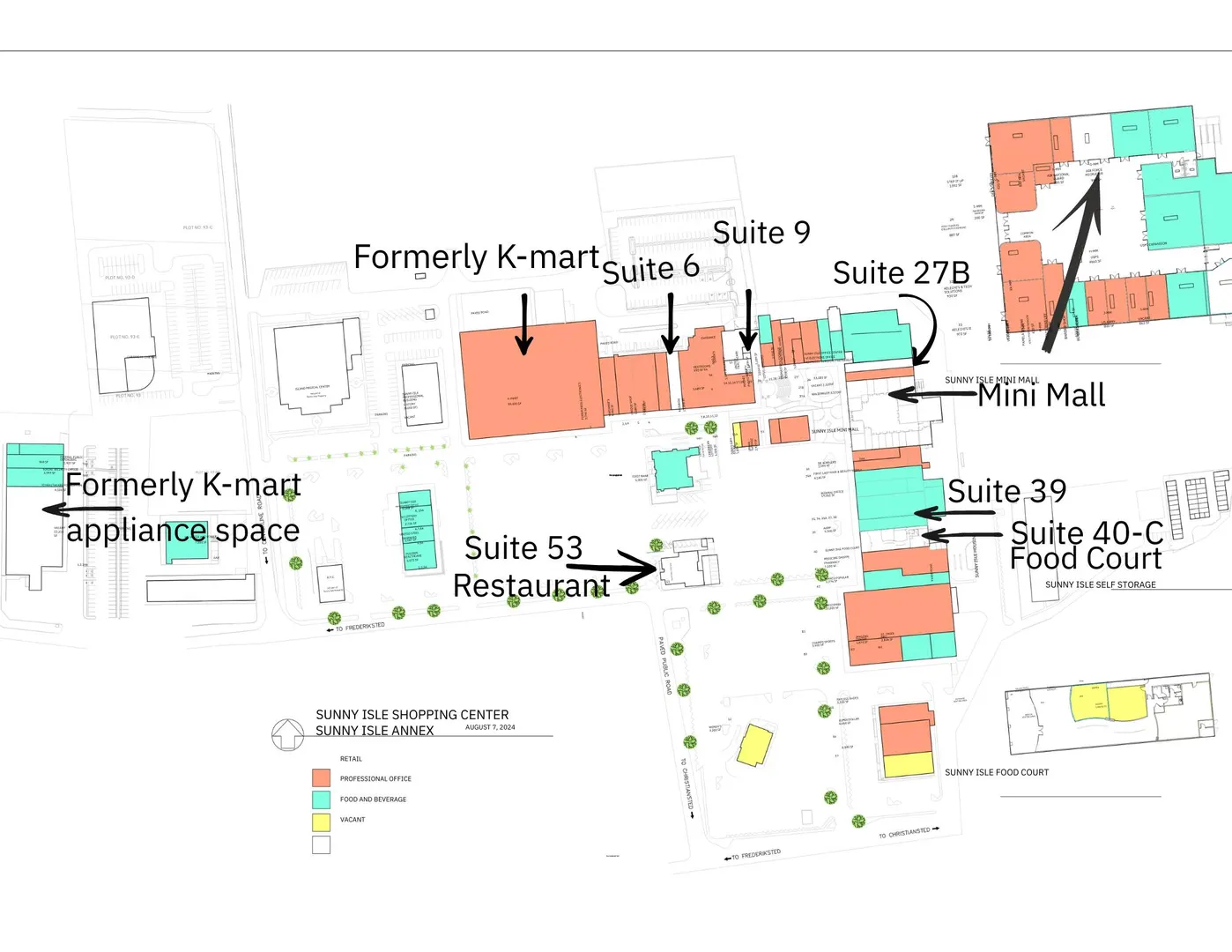 Retail Opportunity in Sunny Isle - St. Croix's Premier Shopping Center Don't miss this chance to establish your business in Sunny Isle Shopping Center, the largest and most well-established retail hub on St. Croix. Perfectly situated in the island's commercial heart, Sunny Isle offers excellent visibility and easy access from every corner of this beautiful island. This bustling, high-traffic center features a diverse mix of businesses including banks, a food court, clothing stores, a post office, government offices, and more. Nearby, you'll also find medical offices, the hospital, the movie theater, and the airport, promising a steady flow of customers right to your doorstep. This unit is a bare bones space next to Rainbow offering a blank canvas for your fabulous ideas.