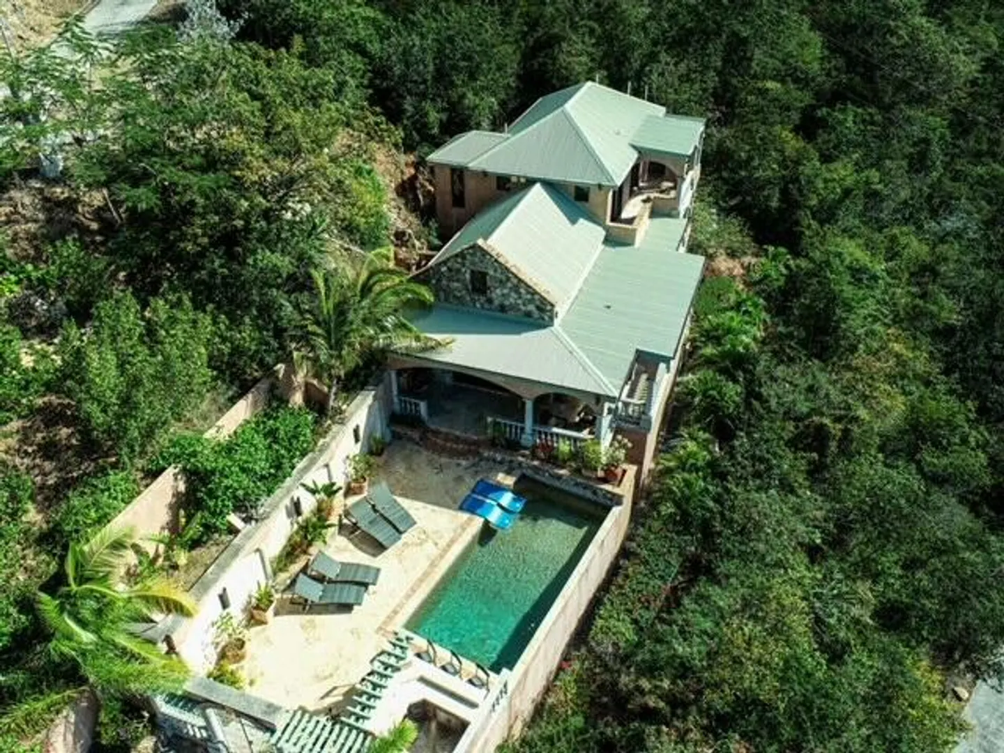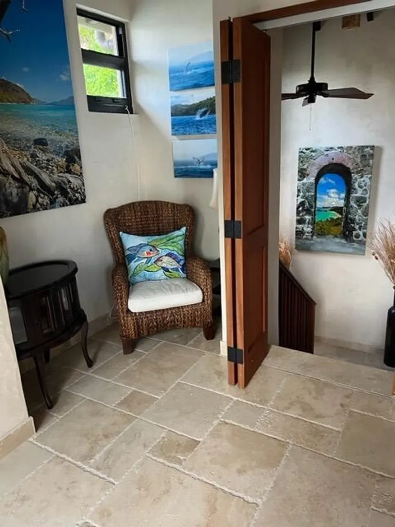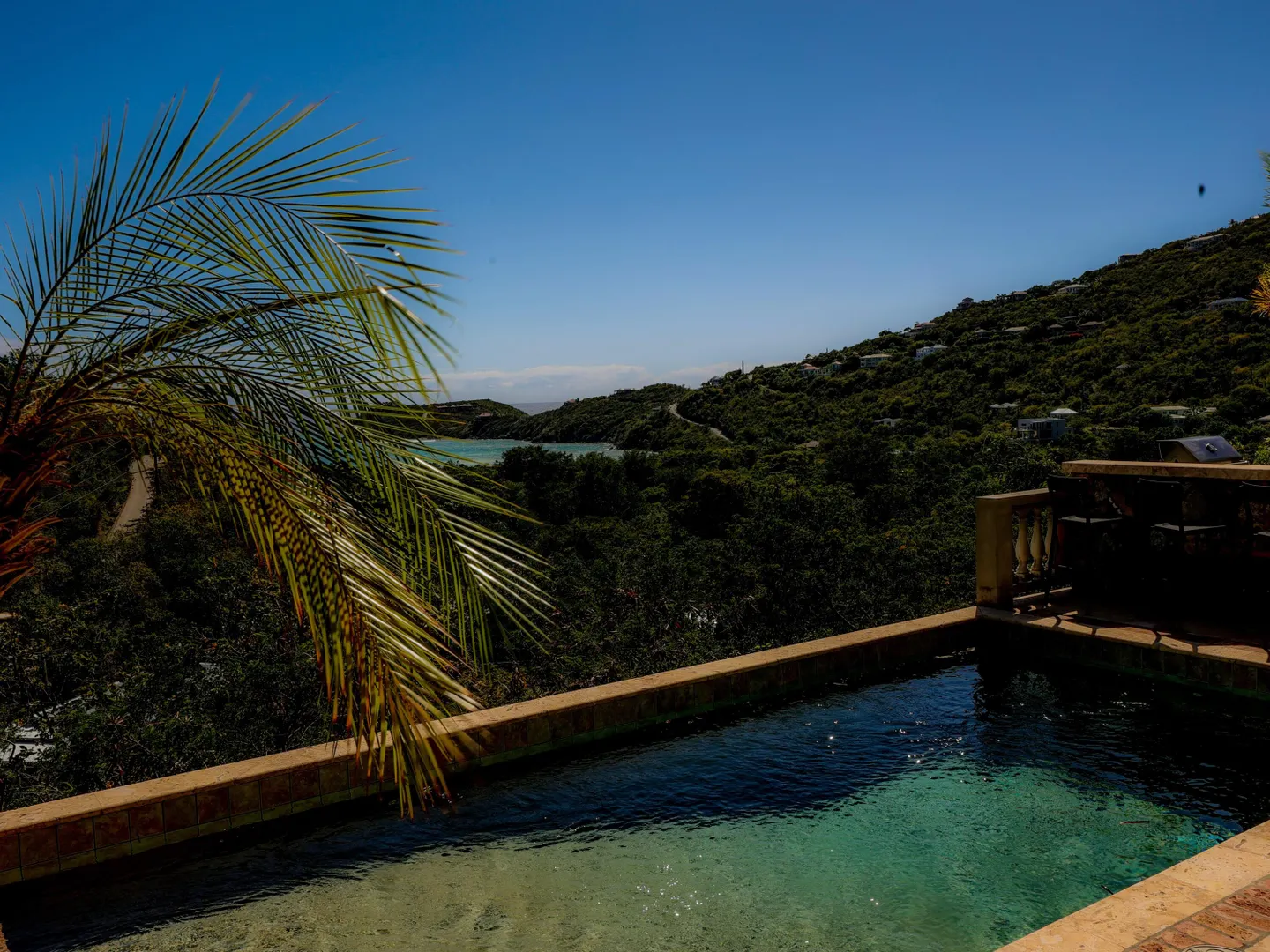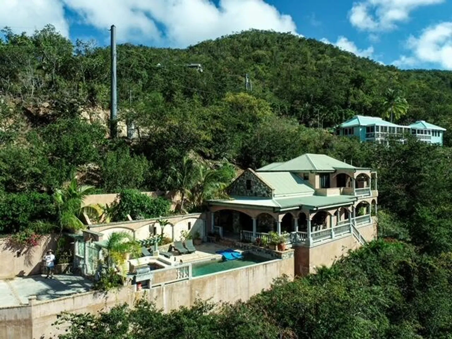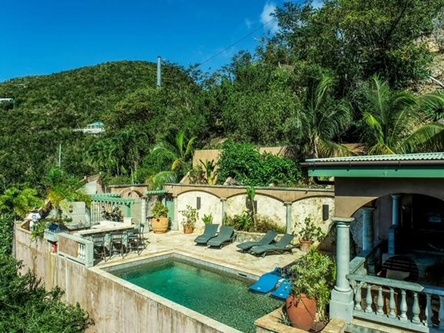 Immaculate home in secluded Fish Bay,in a peaceful neighborhood. This exquisitely furnished 2 bedroom 2 1/2 bath home features a private driveway with easy parking, mature landscaping, gorgeous views and breezes. A lovely pool deck and outdoor bar area allows for entertaining and relaxing. A large covered deck with outdoor dining and custom built brick pizza oven leads to the lower bedroom and outdoor shower. High vaulted ceilings and custom mahogany doors await you when entering the home. A spacious kitchen with concrete countertops and custom cabinetry for easy living. A stairwell leads to upper floor, to a sitting room and primary bedroom, bathroom with indoor and outdoor shower. House has a 26 KW Kubota diesel generator and transfer switch. 3 large storage areas bellow house