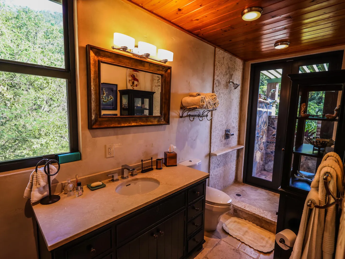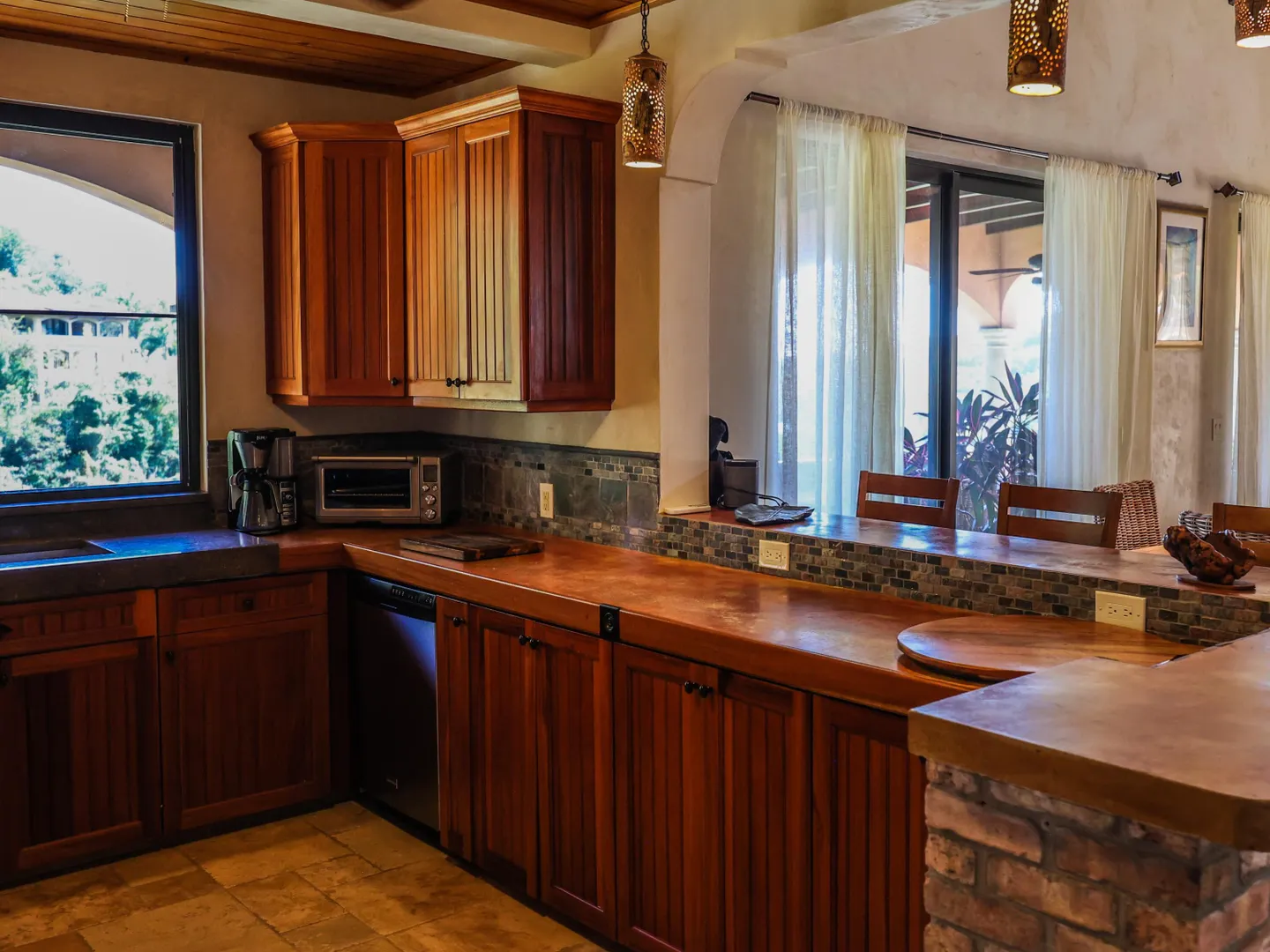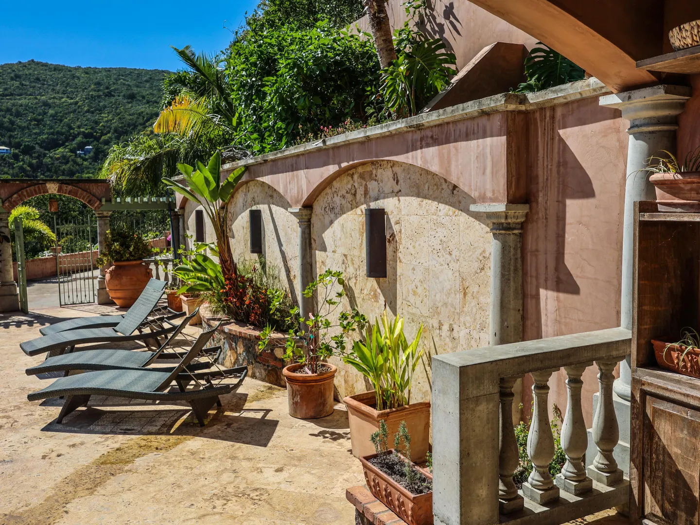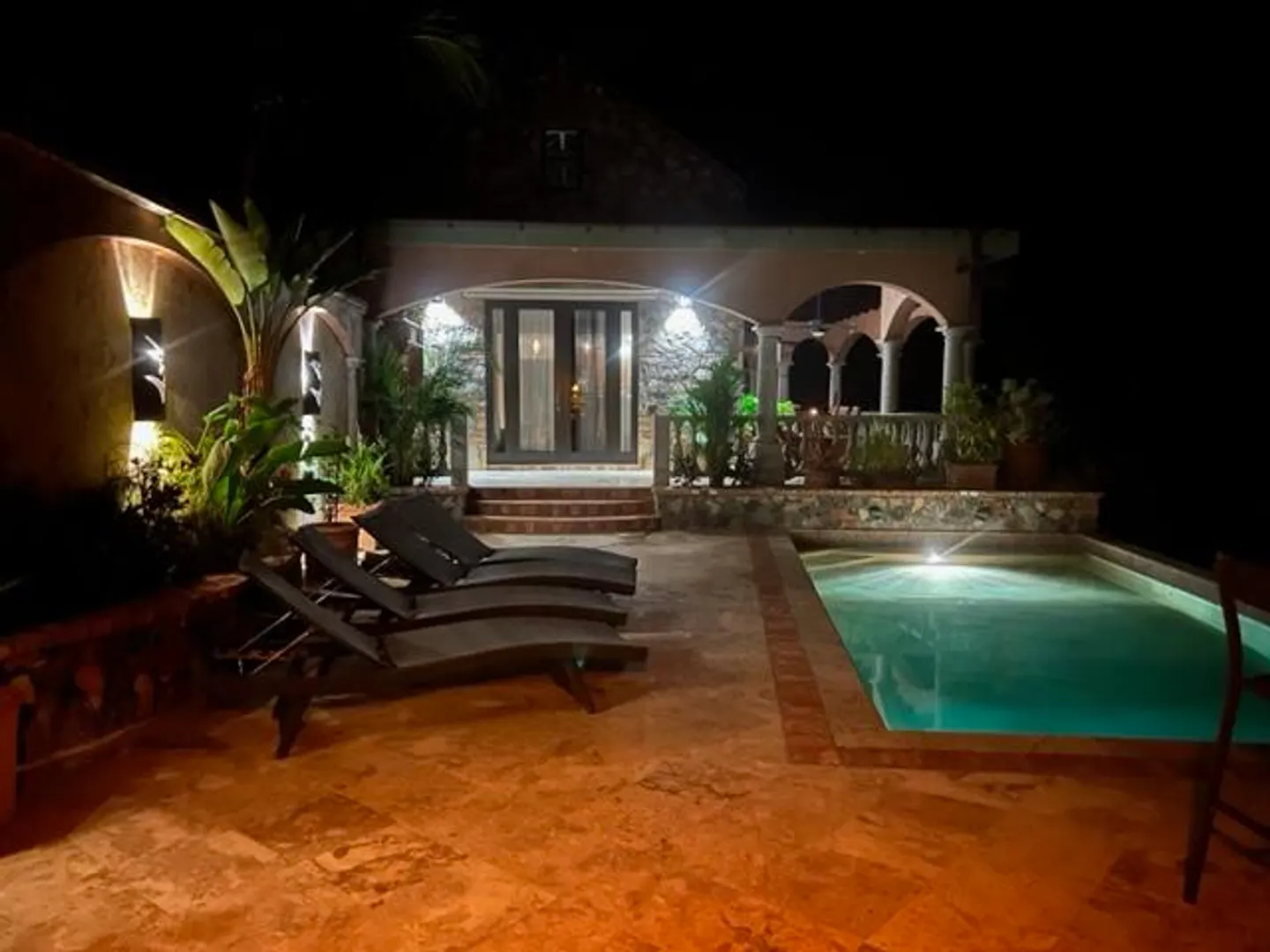 Immaculate home in secluded Fish Bay,in a peaceful neighborhood. This exquisitely furnished 2 bedroom 2 1/2 bath home features a private driveway with easy parking, mature landscaping, gorgeous views and breezes. A lovely pool deck and outdoor bar area allows for entertaining and relaxing. A large covered deck with outdoor dining and custom built brick pizza oven leads to the lower bedroom and outdoor shower. High vaulted ceilings and custom mahogany doors await you when entering the home. A spacious kitchen with concrete countertops and custom cabinetry for easy living. A stairwell leads to upper floor, to a sitting room and primary bedroom, bathroom with indoor and outdoor shower. House has a 26 KW Kubota diesel generator and transfer switch. 3 large storage areas bellow house